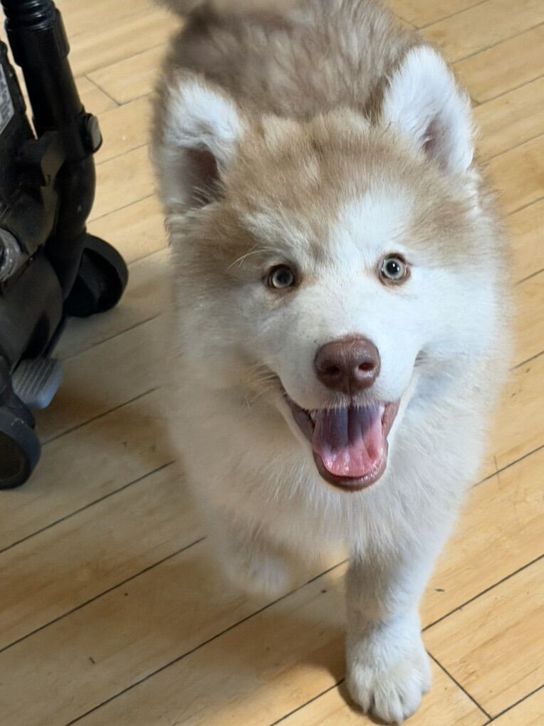 Puff is a three-month-old purebred Alaskan Malamute with a stunning long coat. Housebroken, great with cats, kids, birds, and other dogs. Super playful and loves lap time, and cuddles on the bed. He’s had his puppy vaccines but isn’t old enough for rabies yet. Rides smooth in the car. Serious inquiries only, tell me about his new home. Parting with him is really hard for us.