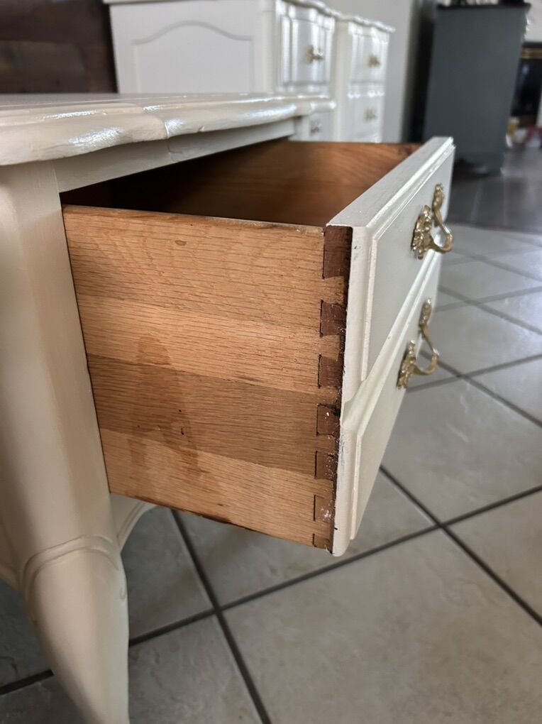 Two newly refinished nightstands. One drawer each. Made by Harmony. Very well made. Newly refinished in a beautiful country cottage white color. 21” wide 20” tall 26” deep FCFS Cash only