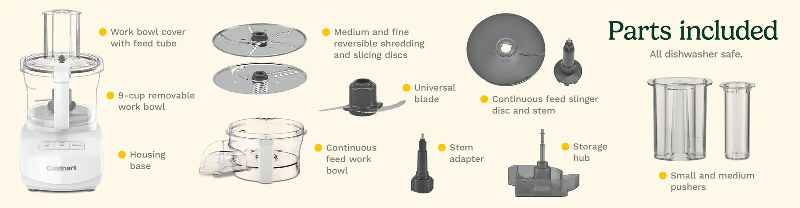 9-cup processor powers through prep tasks and provides large-batch capacity.