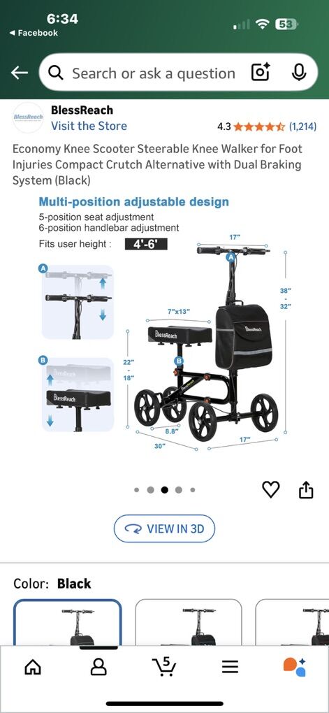 ZelleBought for a broken leg and was never used. Unable to return as the box was thrown out. $60.