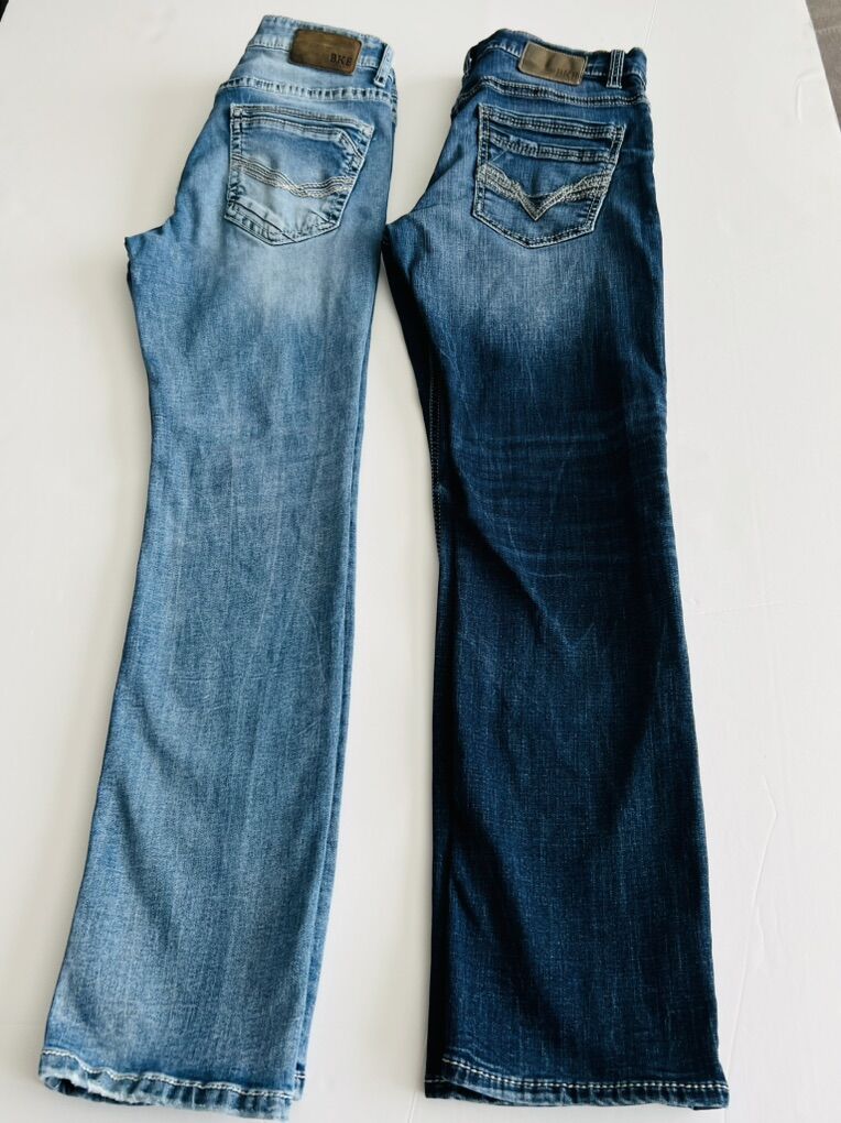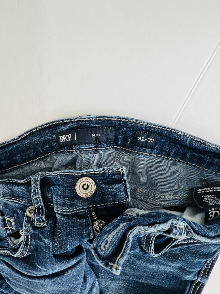 Venmo2 Pair of men’s BKE Alec jeans Size : 32x32 Light and dark blue wash Slim , straight fit Some light fading from normal wear. (See photos)