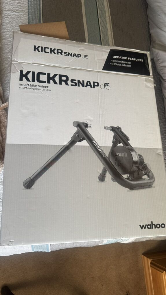 Brand new Wahoo KICKR SNAP smart trainer. I purchased it but never ended up using it after realizing it was not compatible with my bike’s axle setup. The trainer has never been ridden on and is in new condition. All parts and original box included.