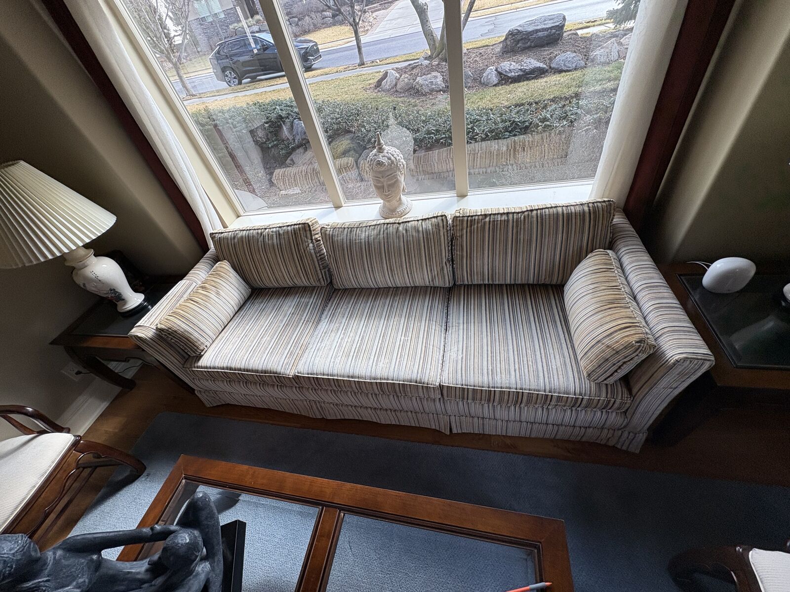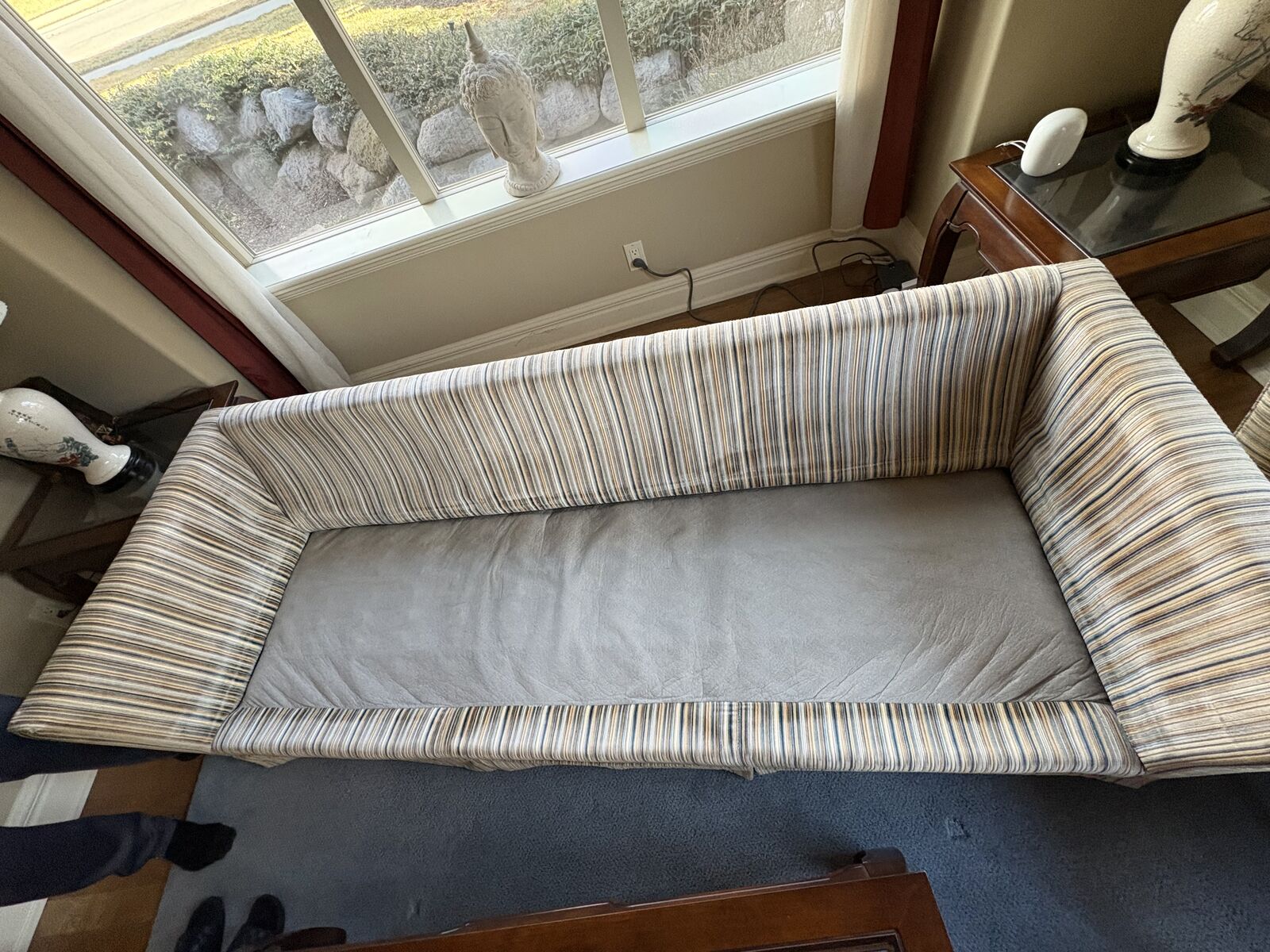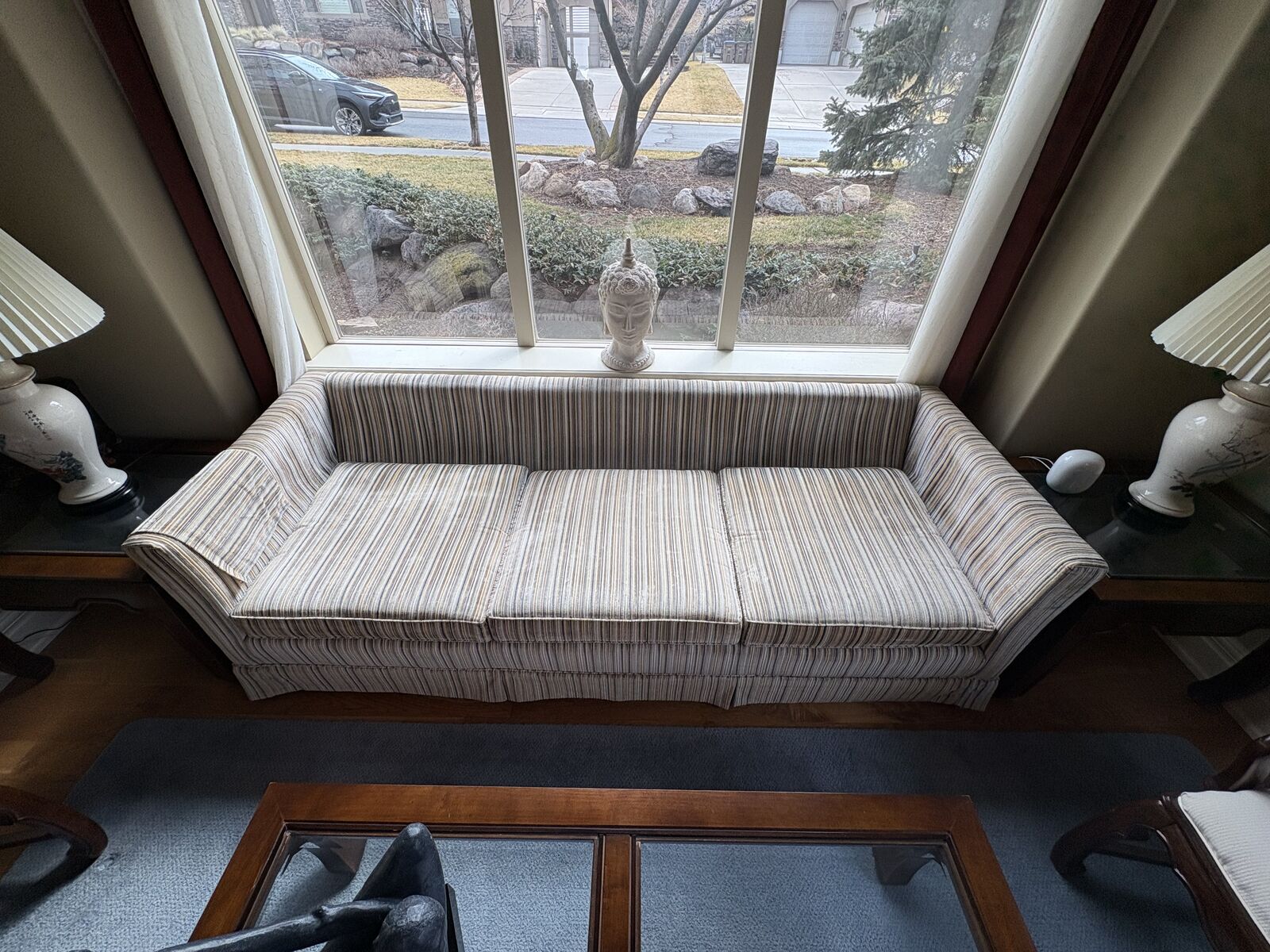 VenmoHigh End Vintage 3 cushion sofa couch. Measura 87" x 34" deep x 25.5" tall back X 17" floor to seat. $600 cash/venmo in Draper