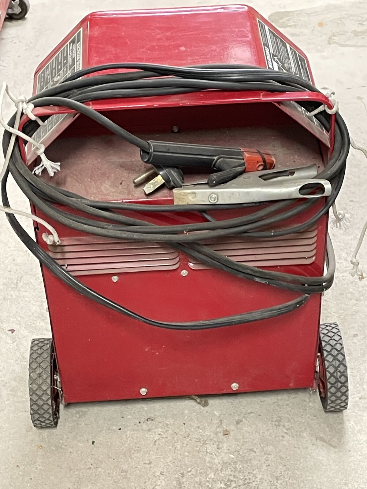 Lincoln AC/DC Arc Welder has not been used very much. There are 2 boxes of rods & a 50' exrension cord. It has wheels, so you can roll it around instead of lifting it. It works great.