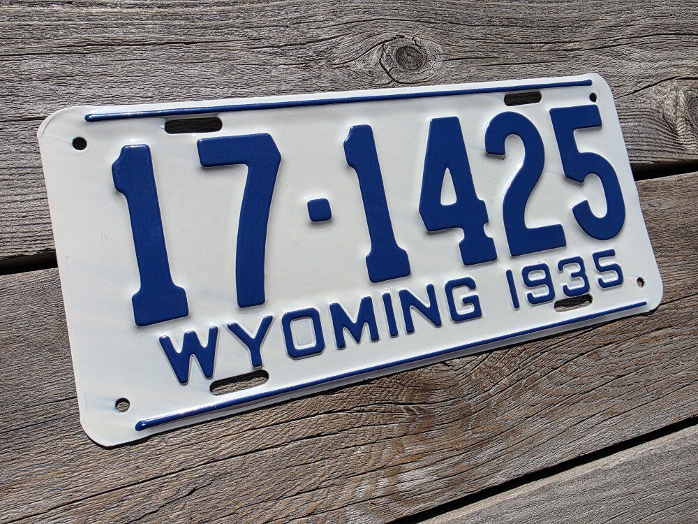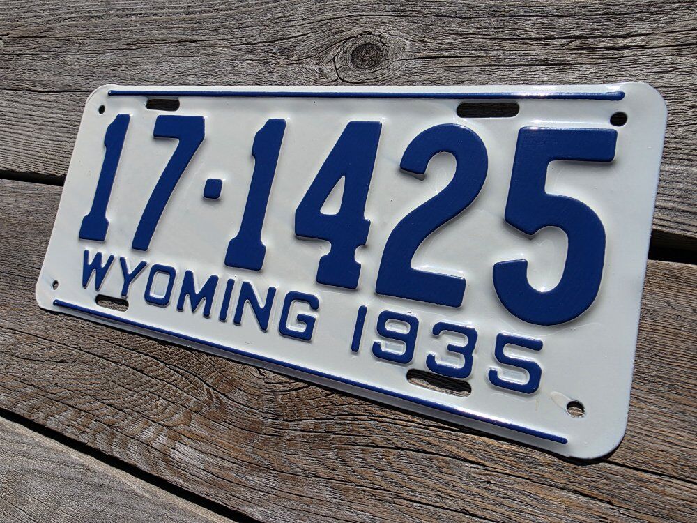 ZelleMINT 1935 Wyo 17 - 1425, Campbell County. Unissued/Unused leftover. Gorgeous 100% Original plate! Rescued from the dump in 1970 when the old Campbell County courthouse was torn down. As good as they get! ~ $200