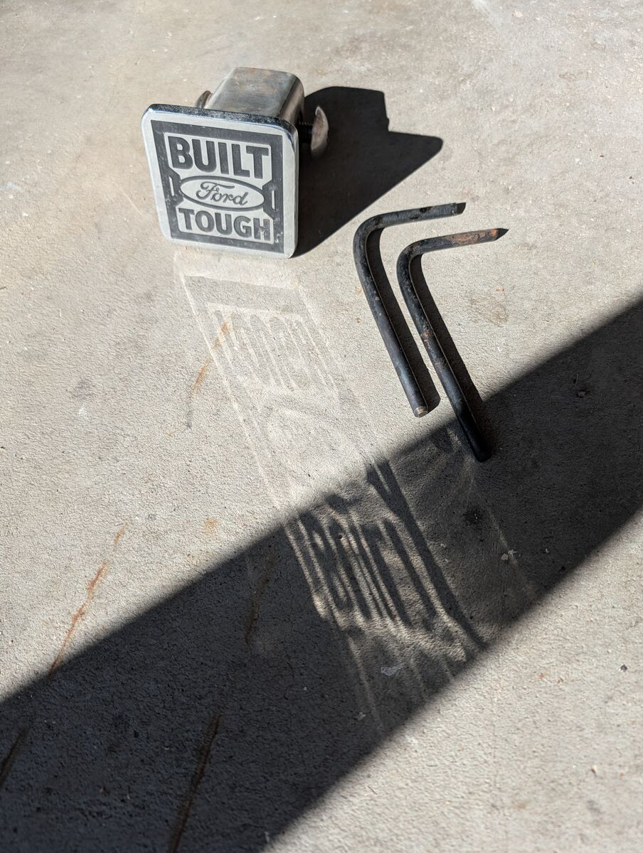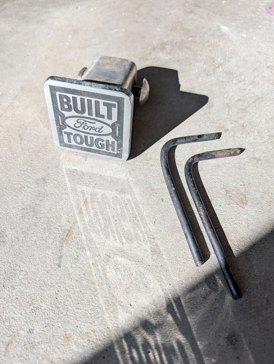 VenmoFord’s ‘BUILT Ford TOUGH’ logo square metal tow hitch cover. Chrome plated solid Brass with Stainless Steel post