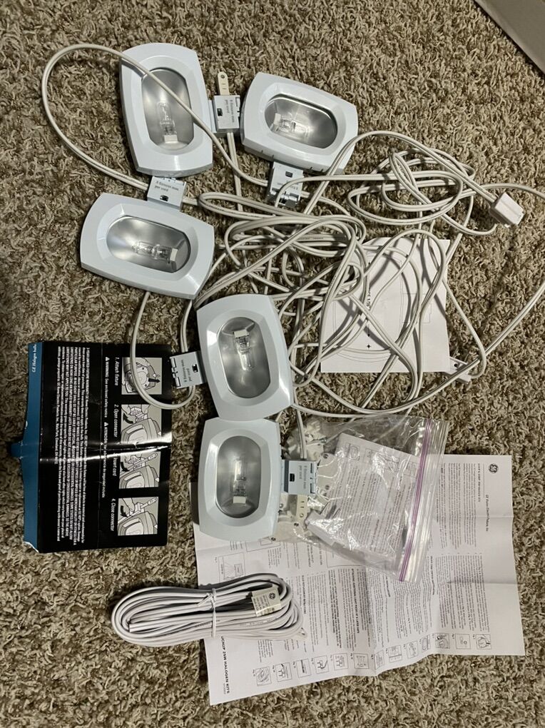 ApplePayGE Halogen Under The Cabinet Chain Lights 5 total plus extra parts for modifications. Plenty of lights for kitchen or loft/desk cabinets. These are in perfect working condition and will make a perfect addition to your home!