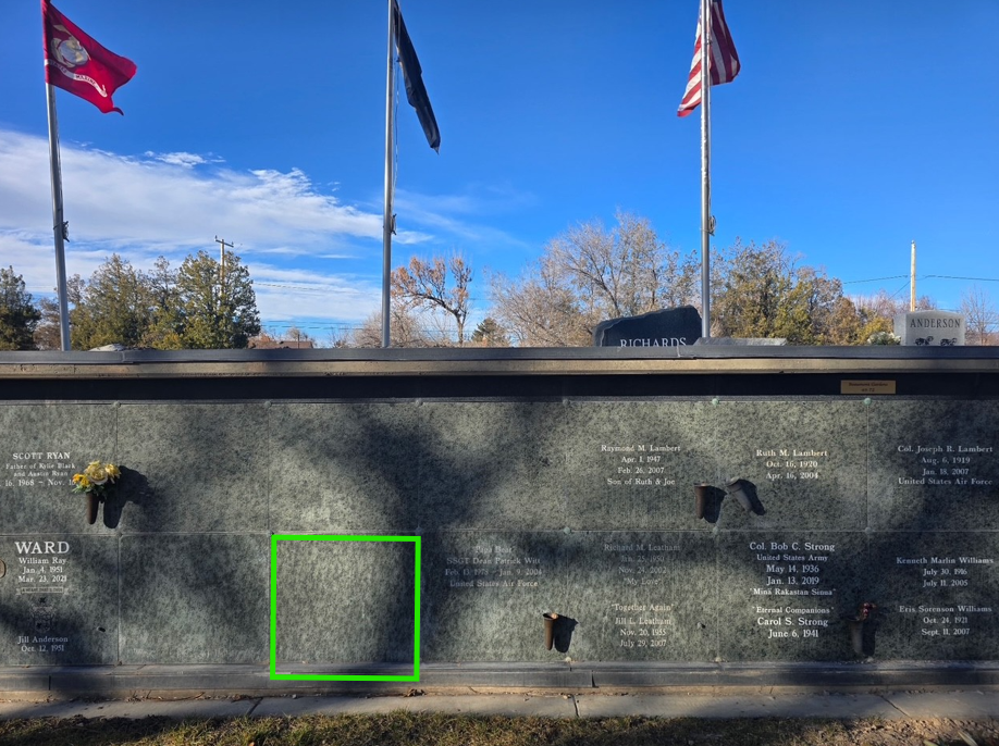 Positioned directly beneath the flags of the United States Armed Forces, this crypt rests in the center of the right memorial wall in Beaumont Garden, a place of quiet honor and enduring dignity. This location was thoughtfully designed to reflect service, sacrifice, and legacy — yet it remains open to anyone seeking a beautiful and permanent place of rest. Military service, veteran or first responder status is NOT required to be buried in this crypt, this crypt is available to the general public.