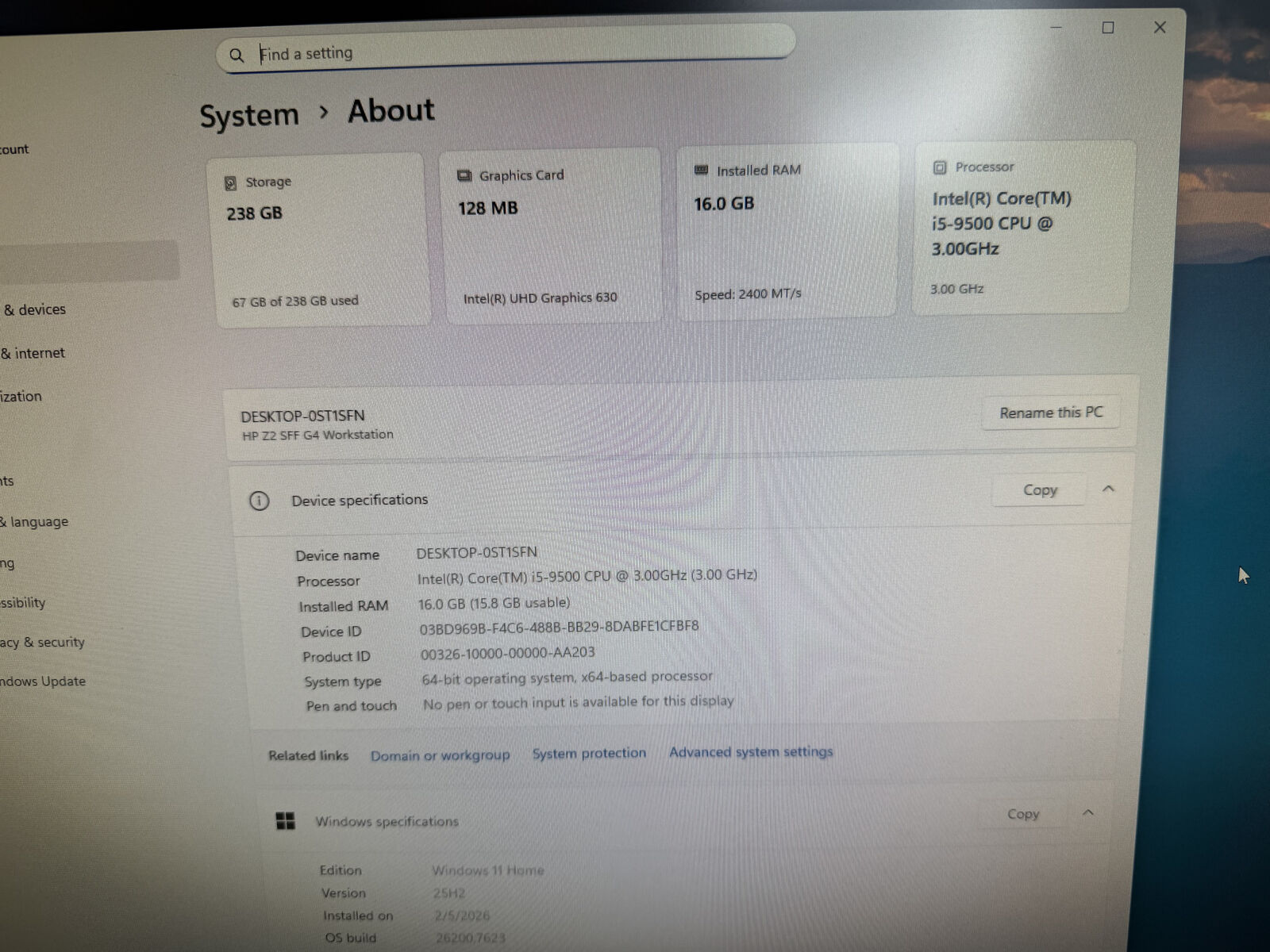 9th Gen core i5 9500 @ 3.00 GHz