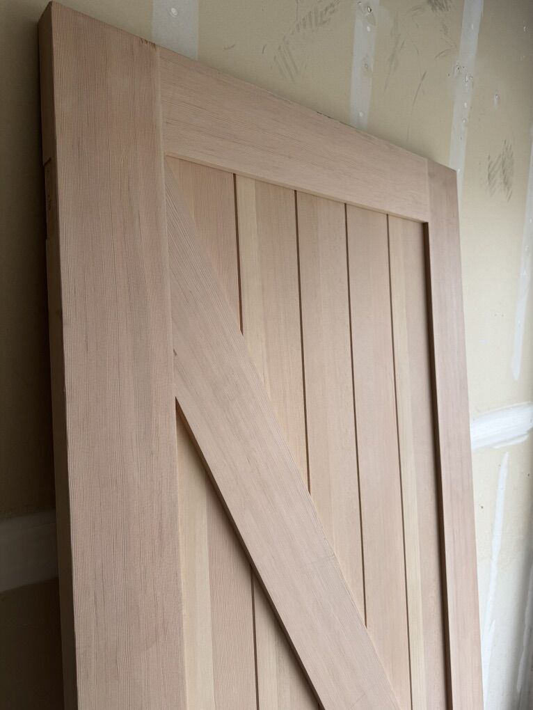 CashAppRaw hemlock has not been painted or stained yet. 36 x 80 x 1 3/4 measurements. Has hinge prep but no knob hole. Can be used for a barn door slab.