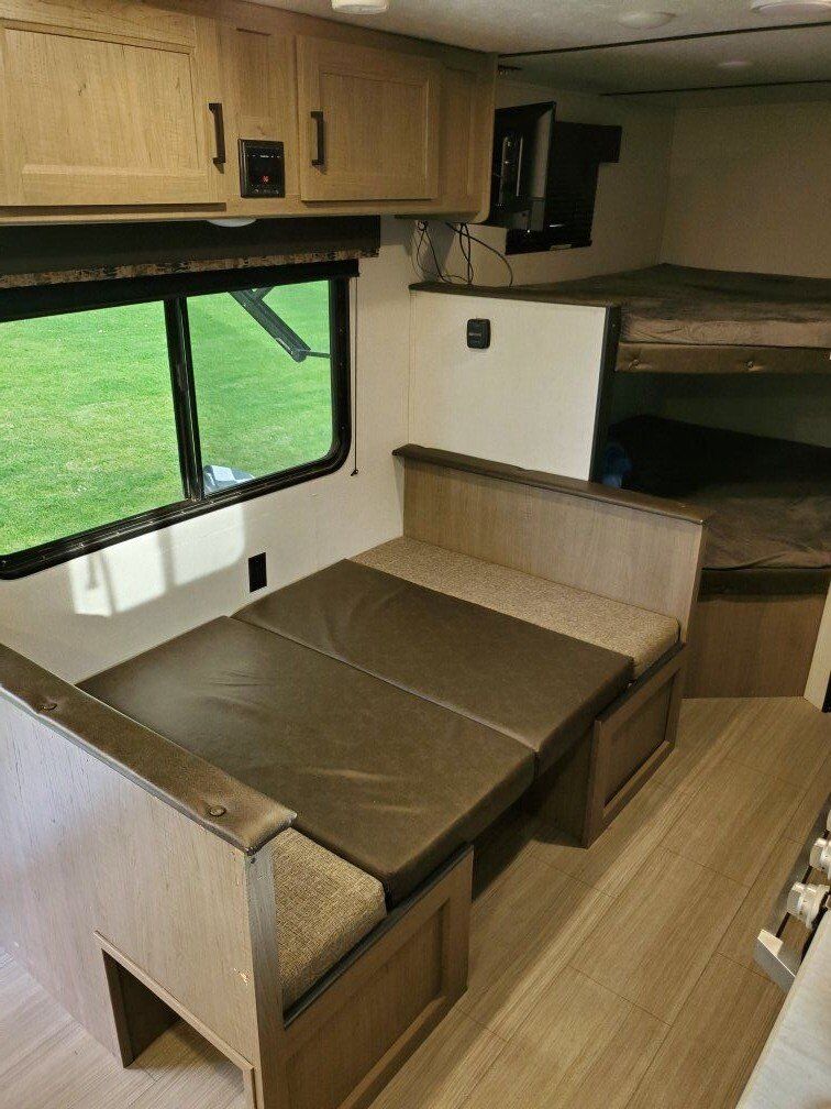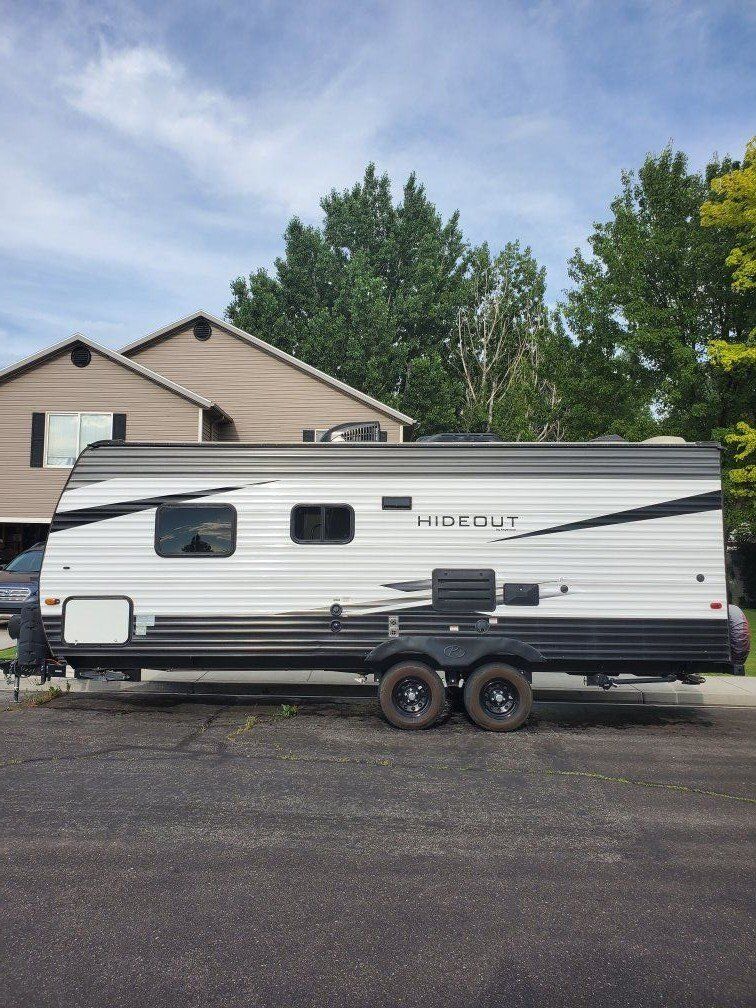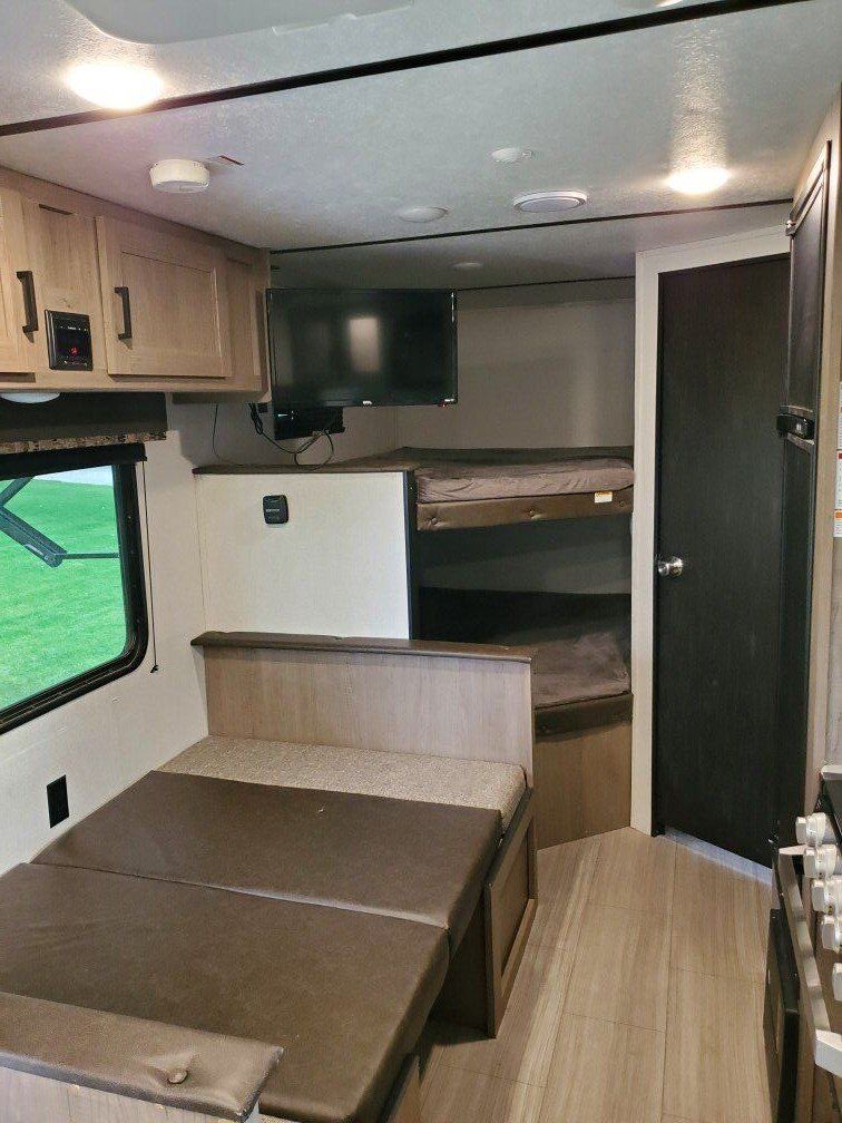 Lightly used 2021 Keystone Hideout bunkhouse in great condition. Easily sleeps 5 with the large bunk beds, table that turns into a full sized bed and Queen size murphy bed. Everything works perfectly. Will include a Champion 4500 watt dual fuel inverter generator for $500 extra.