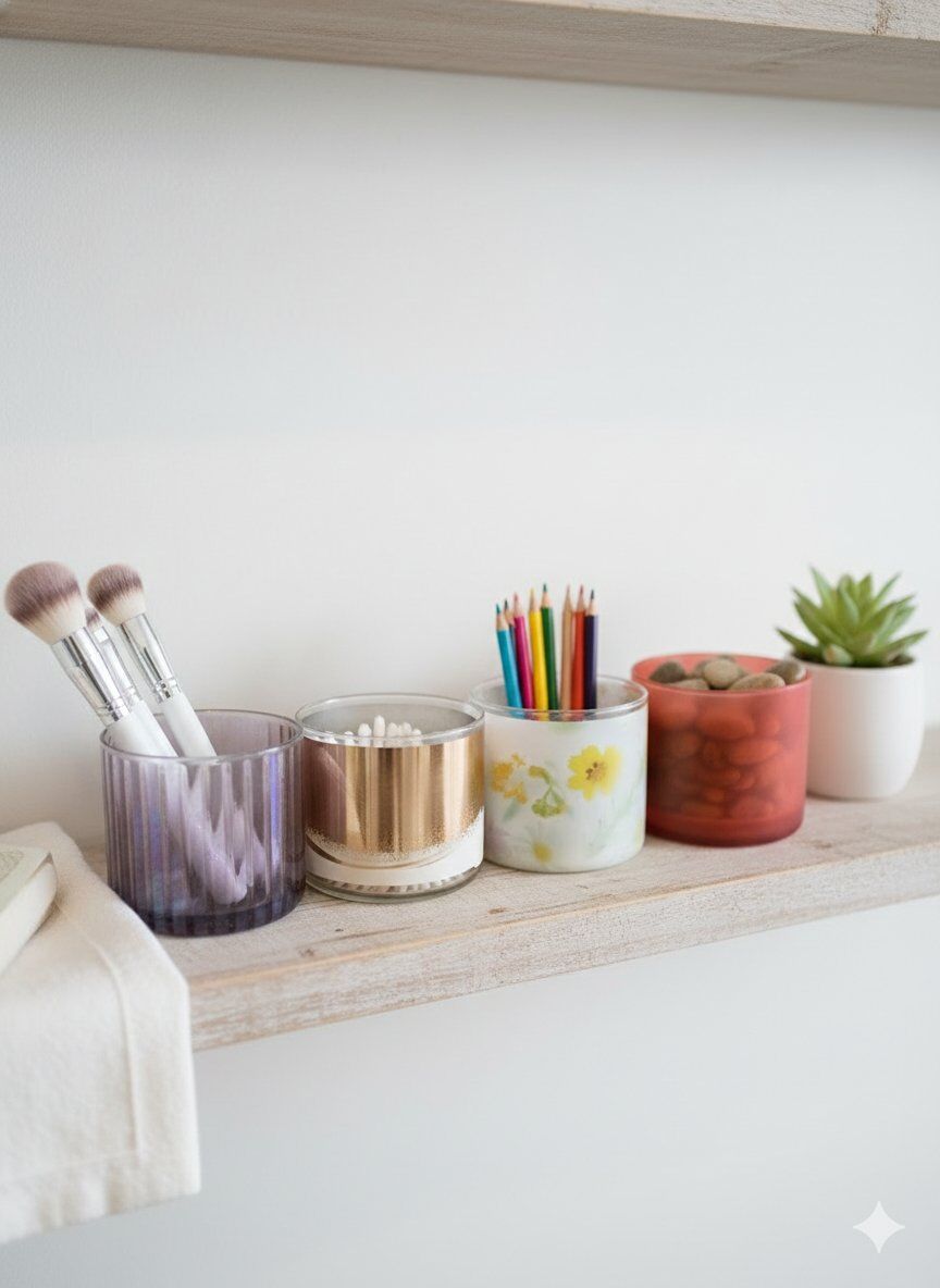 Perfect for: Vanity/Bathroom: Makeup brushes, cotton swabs, or hair ties.