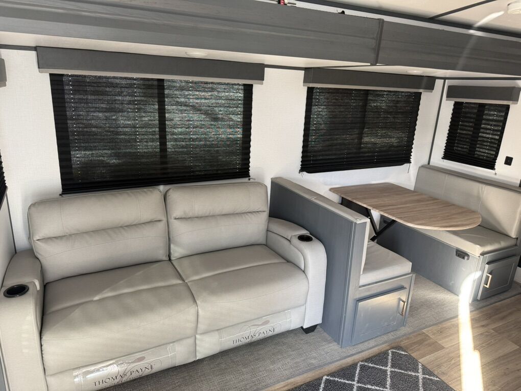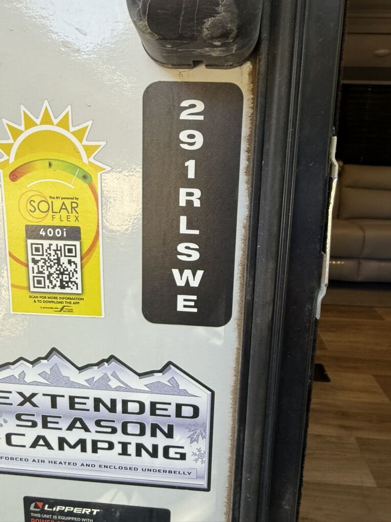 Trailer is in new condition, and barely used. The couch hasn’t even been sat on! The 2023 Keystone Bullet 291RLS is a lightweight, rear-living travel trailer measuring approximately 33 feet 11 inches in length with a dry weight around 6k lbs. It features a single slideout, a 700 lb hitch weight, and sleeps up to 5 people, featuring a private front master bedroom, 43-gallon fresh water capacity, solar panels, tankless water heater, and perfect layout!