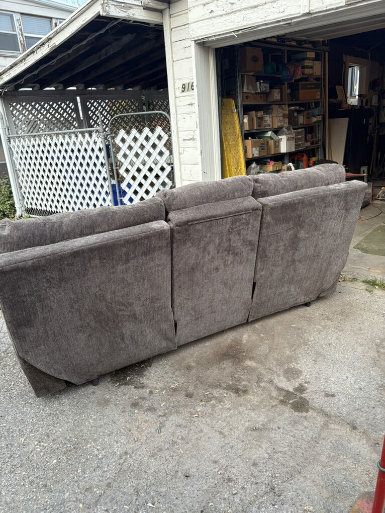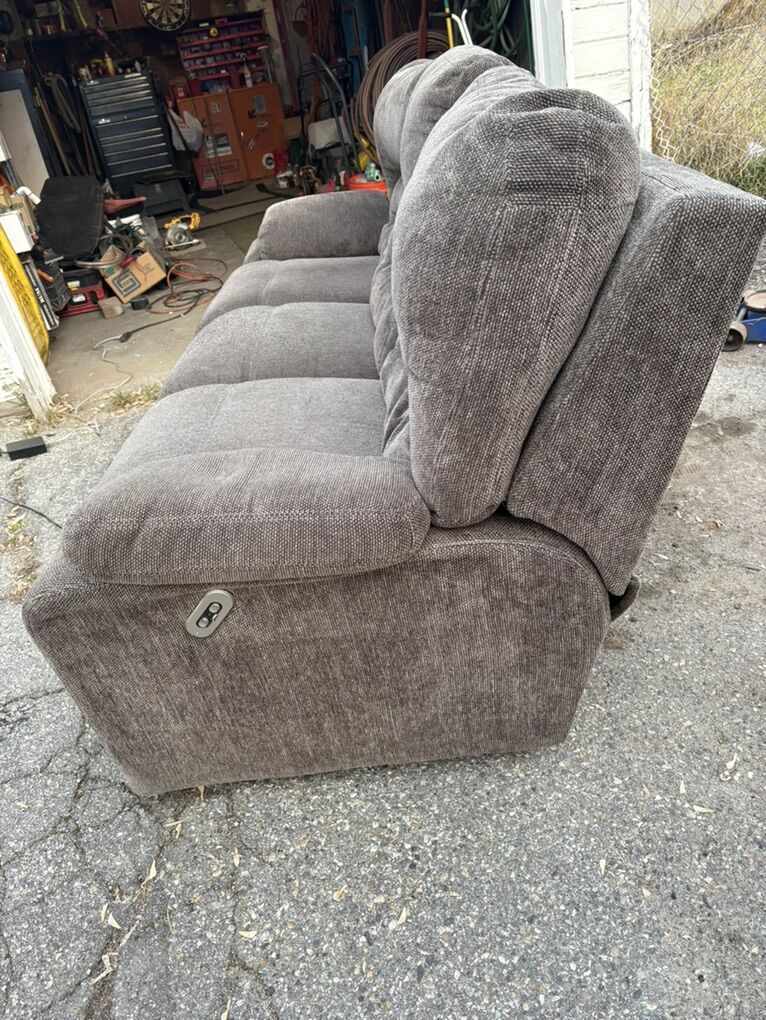 VenmoGray Couch With Power Recliners & Middle Table with overhead lights, and also has a pull out drawer in the middle. Works great, it’s in perfect condition, only 3 years old and just like new. See pics. Length is 89 inches Smoke free home Text me if you have any questions.