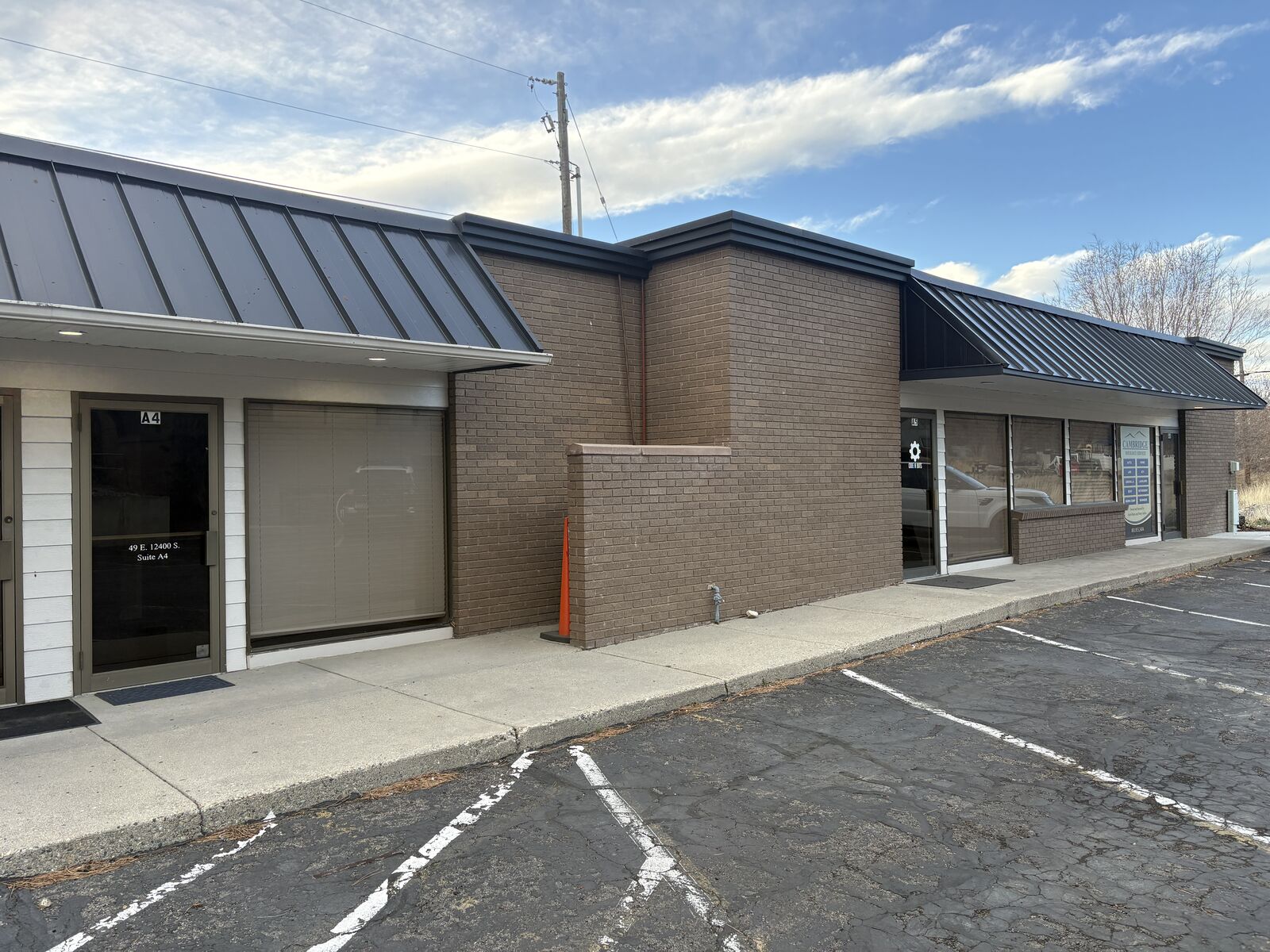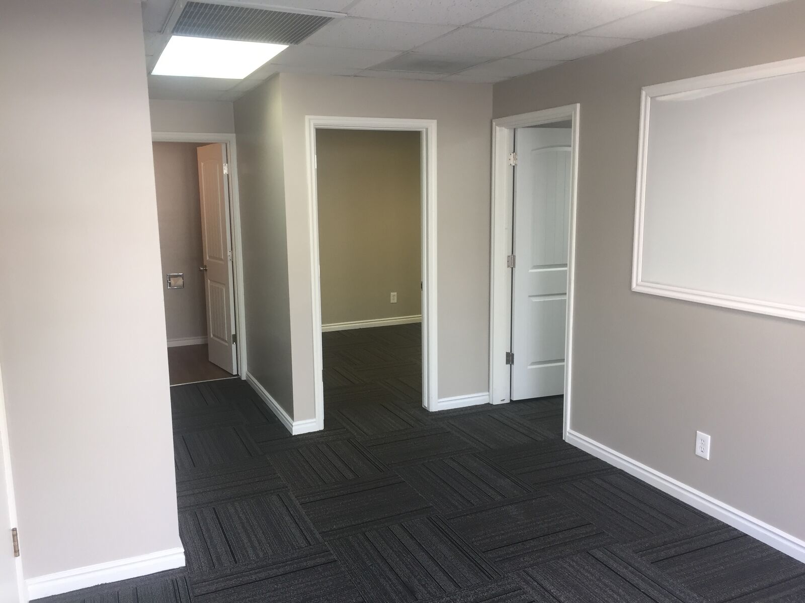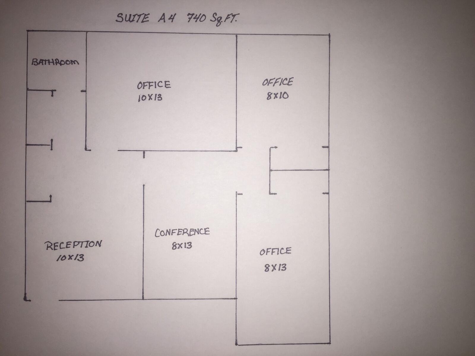 This office suite has 711 sq. ft. of space with four offices, one small reception area, one private bathroom, and storage. The suite requires a 1 year lease (longer if desired) which can be renewed or switched to a month to month tenancy at the end of the lease agreement. The rent is modified full service with the tenant paying utilities and internet. There are no CAM or Triple Net costs associated with this suite.