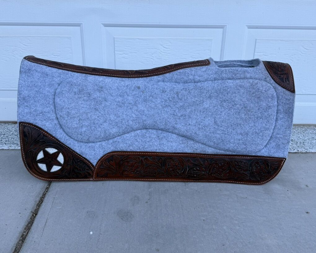 Robert Teskey Moisture Wicking Felt Gel Pad Contoured 1- inch Thickness with Wear Leathers Tooled Floral Cow Hair Star Light Grey