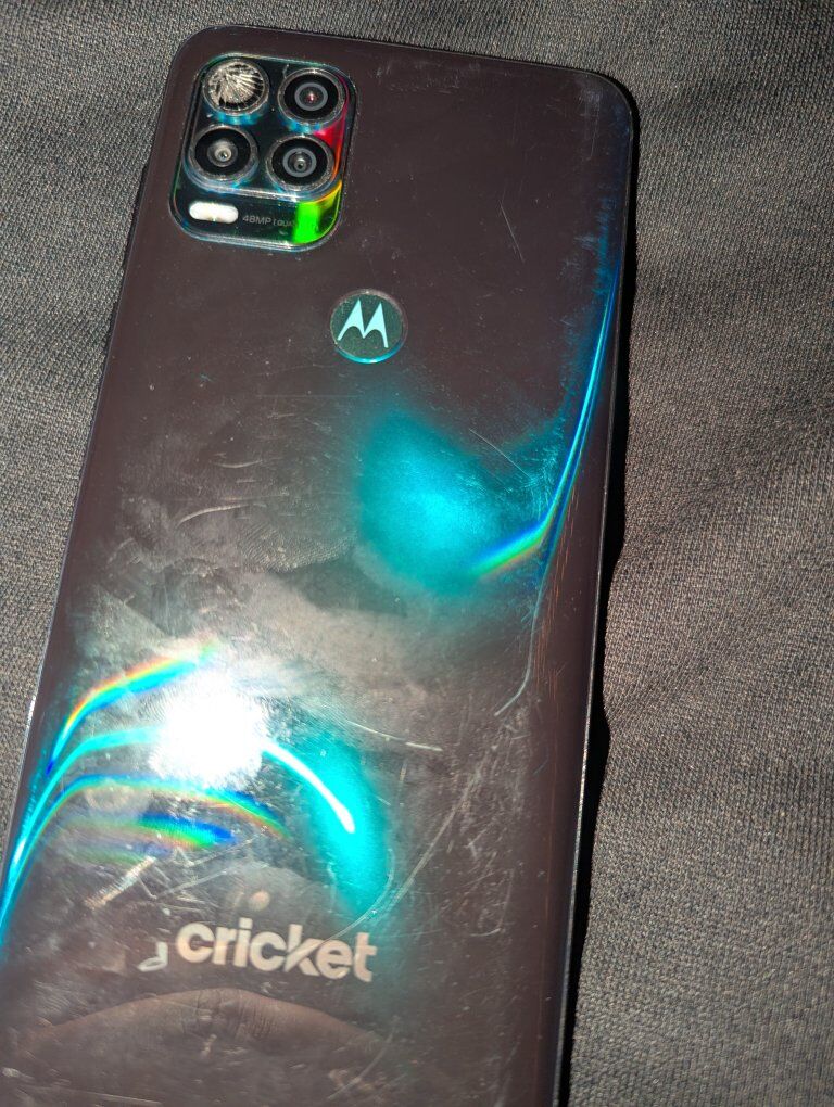VenmoMoto 5G w/ Stylus. Phone is very beat/scuffed up with camera lens cracked. No charger included. Does turn on and ready to go. Can use it for parts or take it in to get a lens replacement.