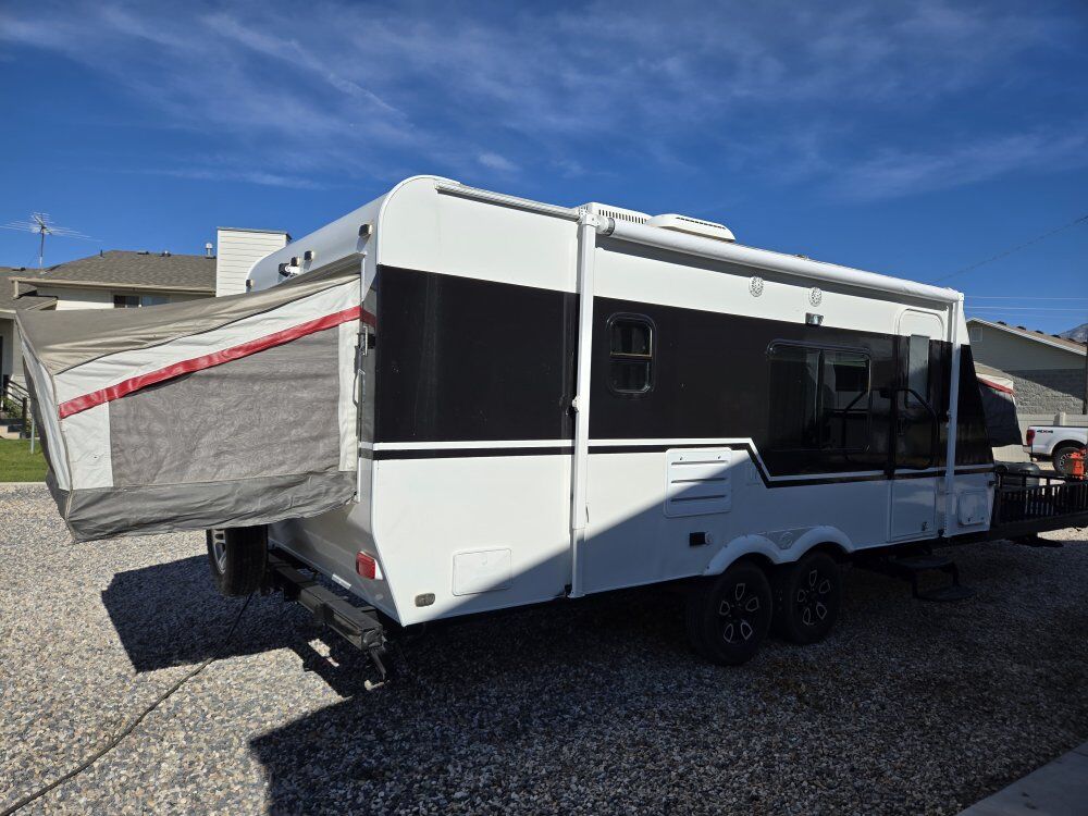 Forest River Palomino Tent trailer that sleeps 7! Opens up on both ends, plus a huge slide. Perfect for taking bikes to the dunes! Exterior done by a professional car painter and looks amazing. Everything works inside and out!! Length 33' weight 5700, inside trailer 20' without tents extended, and trailer at front is 8x8. No trades No holds No soliciting First Come First Serve.