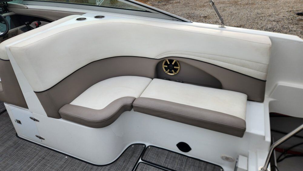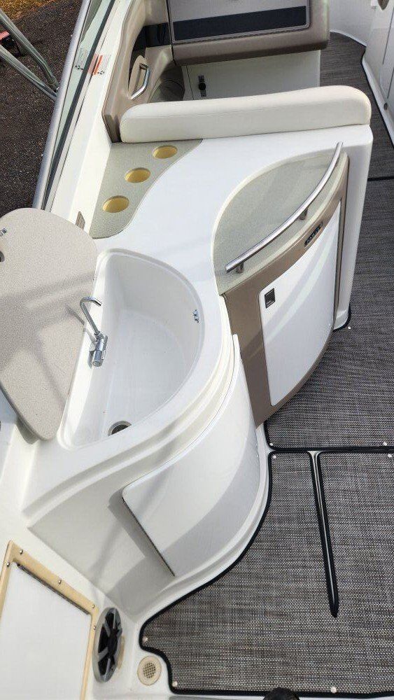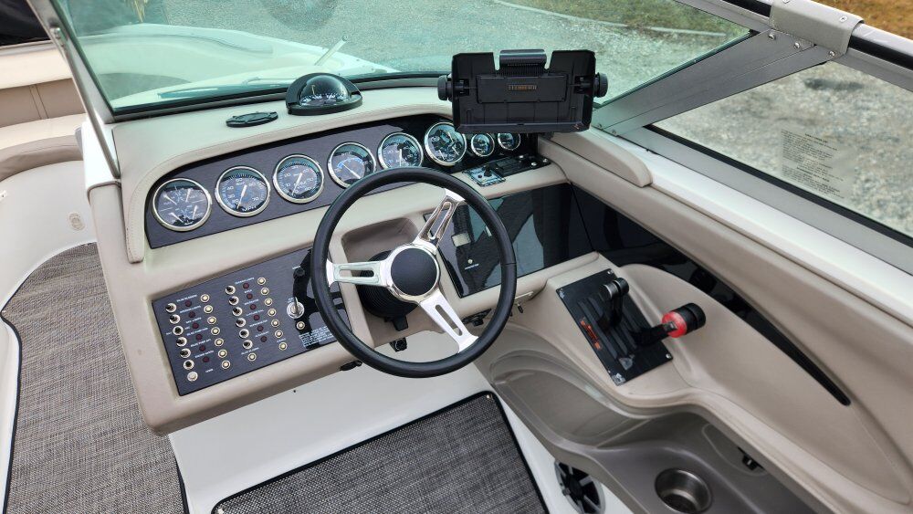 New seadek type flooring and new dash panels. Upgraded stereo system that is impressive. Included mount for Garmin chart plotter, transmitter included.