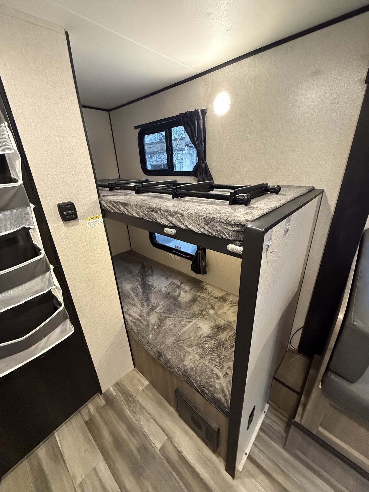 • Tankless water heater for continuous hot water • Backup camera for easy parking and towing • Double bunk beds • Front queen bed • Power awning • Lightweight and SUV-towable This trailer is a great match for local camping — whether you’re heading up the canyon, visiting state parks, or exploring off-grid spots.