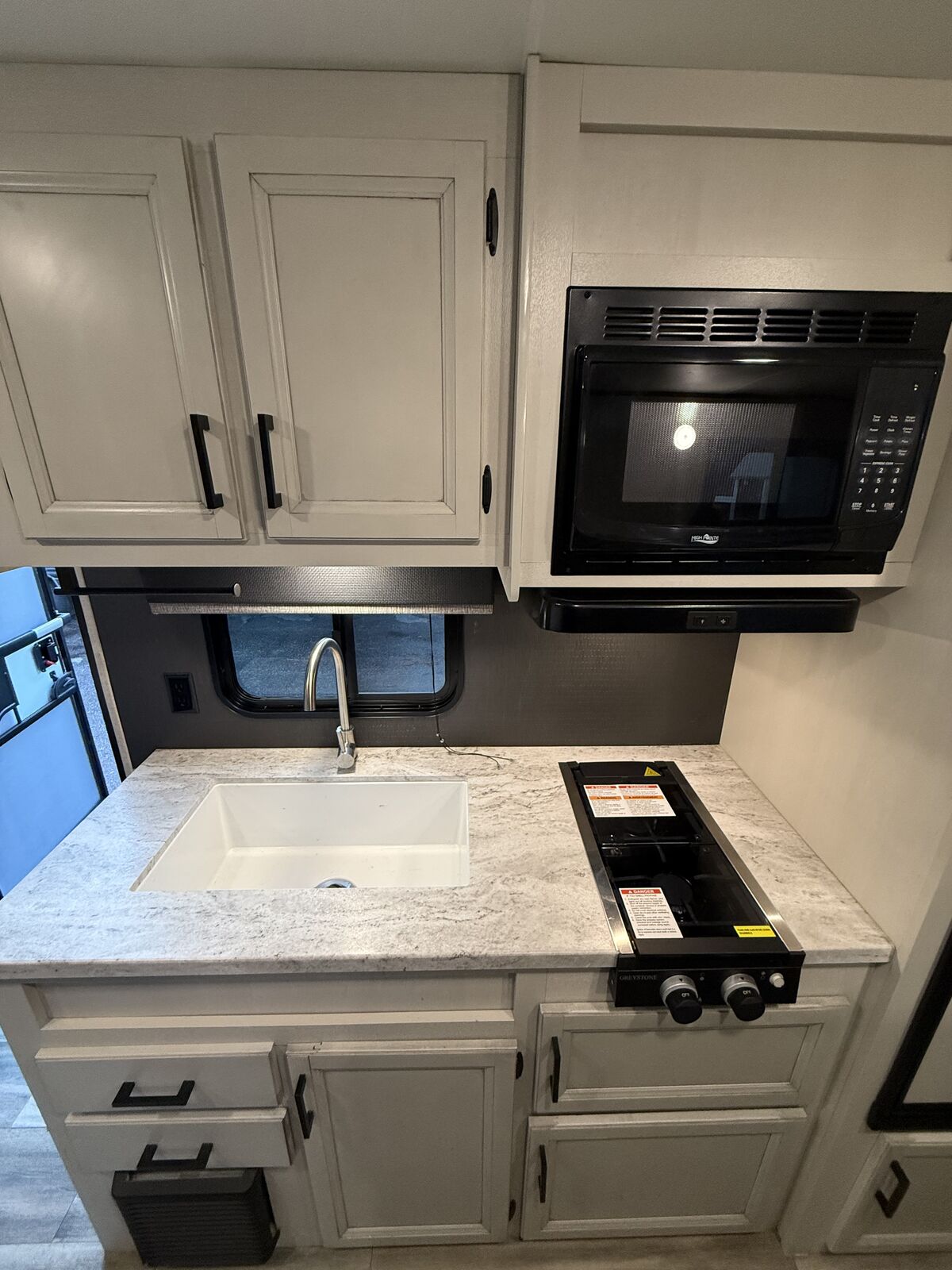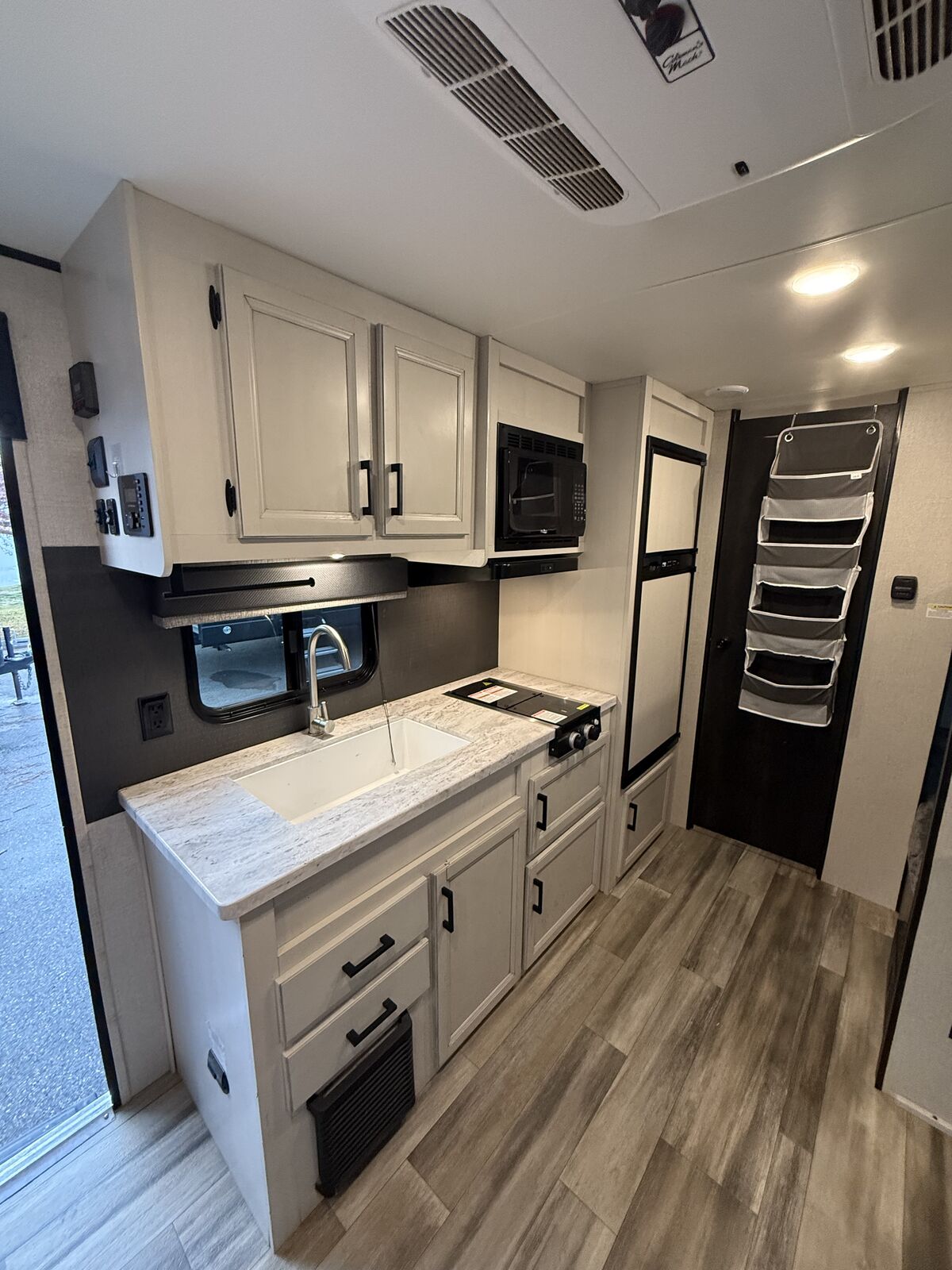 • Length: 22 ft 2 in • Dry weight: approx. 3,720 lbs • GVWR: 4,900 lbs • Fresh water tank: 20 gal • Gray tank: 19.9 gal • Black tank: 19.9 gal • Sleeping capacity: up to 6 Highlights: