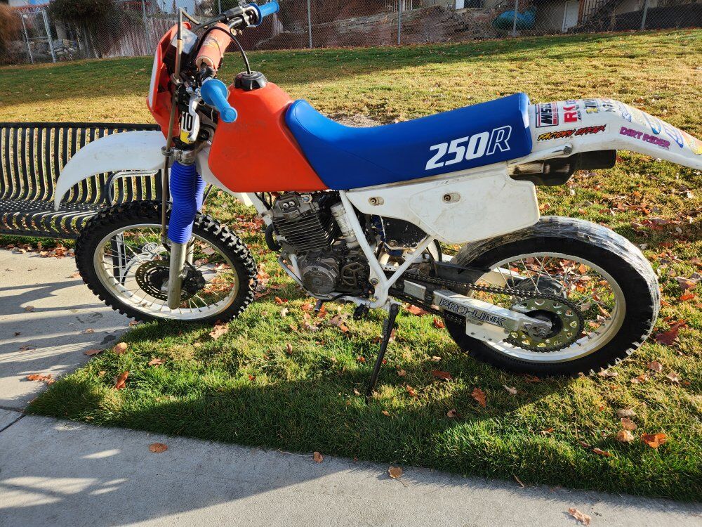 This is a real nice 1987 Honda XR250R -Just had a fully rebuilt motor -new rear tire never ridden on. -new seat cover. This was a low hour bike for its year, motor just built from bare cases up all is good as new or brand-new parts, crank/rod, new bearings & seals, fresh cyl bore the first oversize with a new Wiseco Piston and cylinder headgasket [all gaskets]. valves were lapped in with new vss, cam and rockers are good as new, ngk plug, i have extra oil filters to contribute remind me. New air filter oiled, otherwise bike is all stock. forks are good with new fork dust guards blue. front brake serviced and rear drum brake in great condition. UT offroad tags good till October! new fuel petcock valve, new chain new sprockets, more new stuff. Headlight works starts right up by kick easy. OEM speedometer/trip meter. Rebuild this past Sept., was only used 1 time for a couple hours so its not even fully broken-in yet. $2,100 in orem