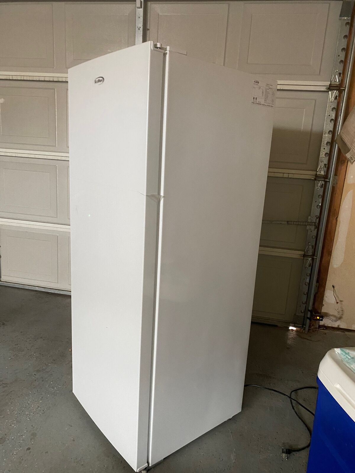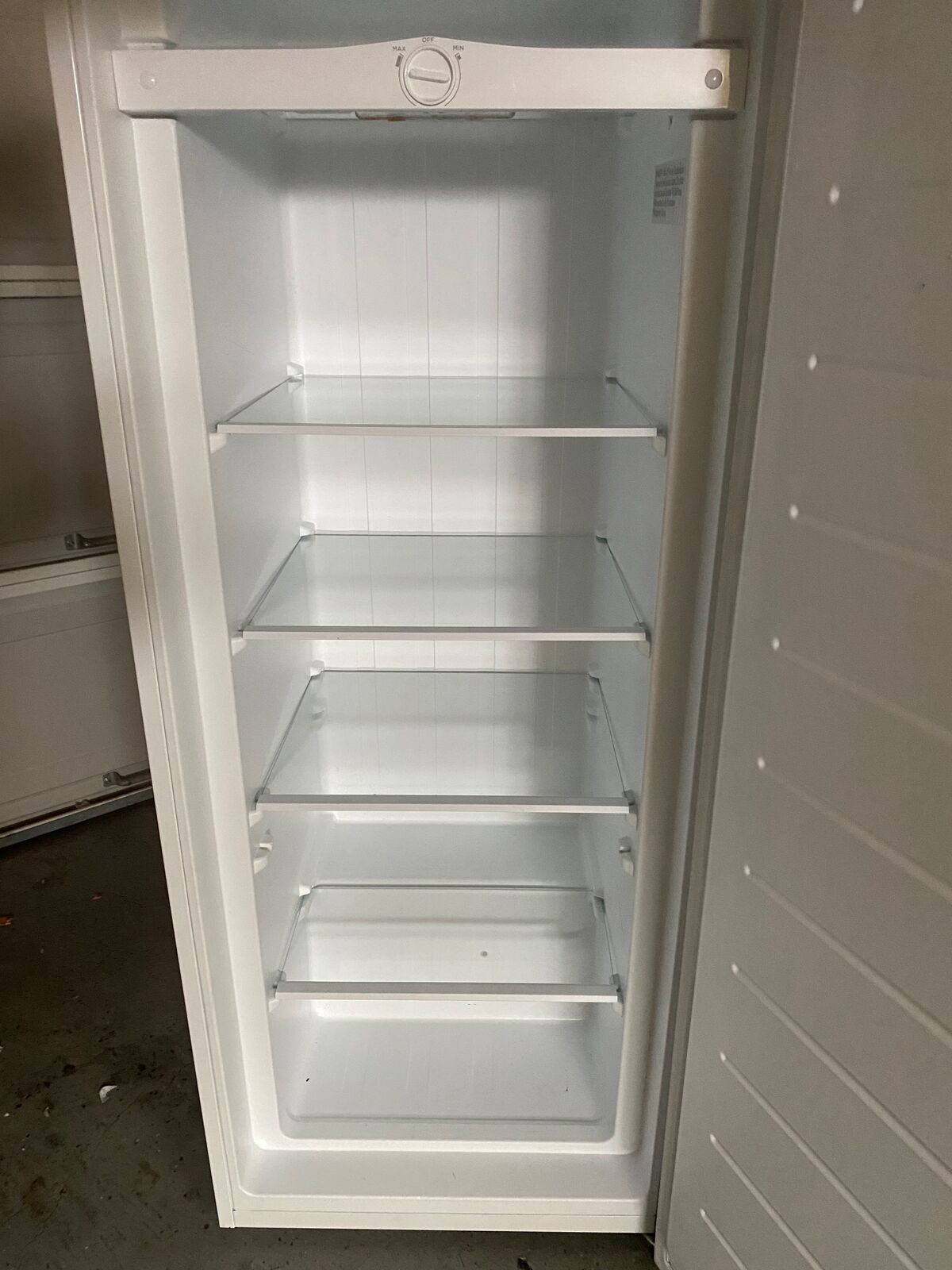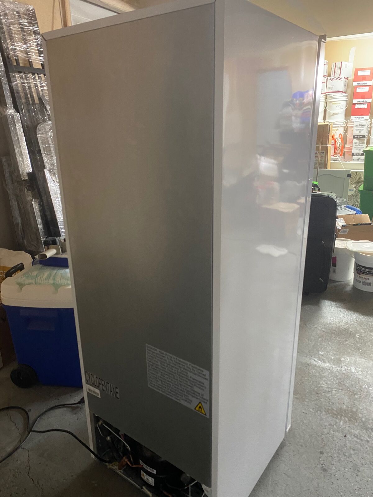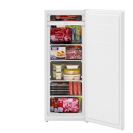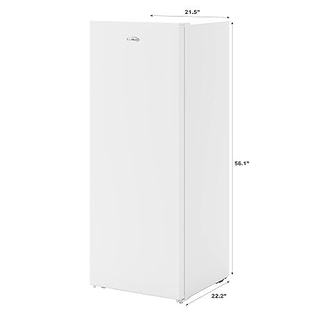 ZelleUniform cooling, adjustable thermostat, adjustable glass shelf storage system with pizza shelving, 7 cubic foot interior space, outside measures 21.56"D x 22.2"W x 56.1"H, works great! Purchased in April 2022.