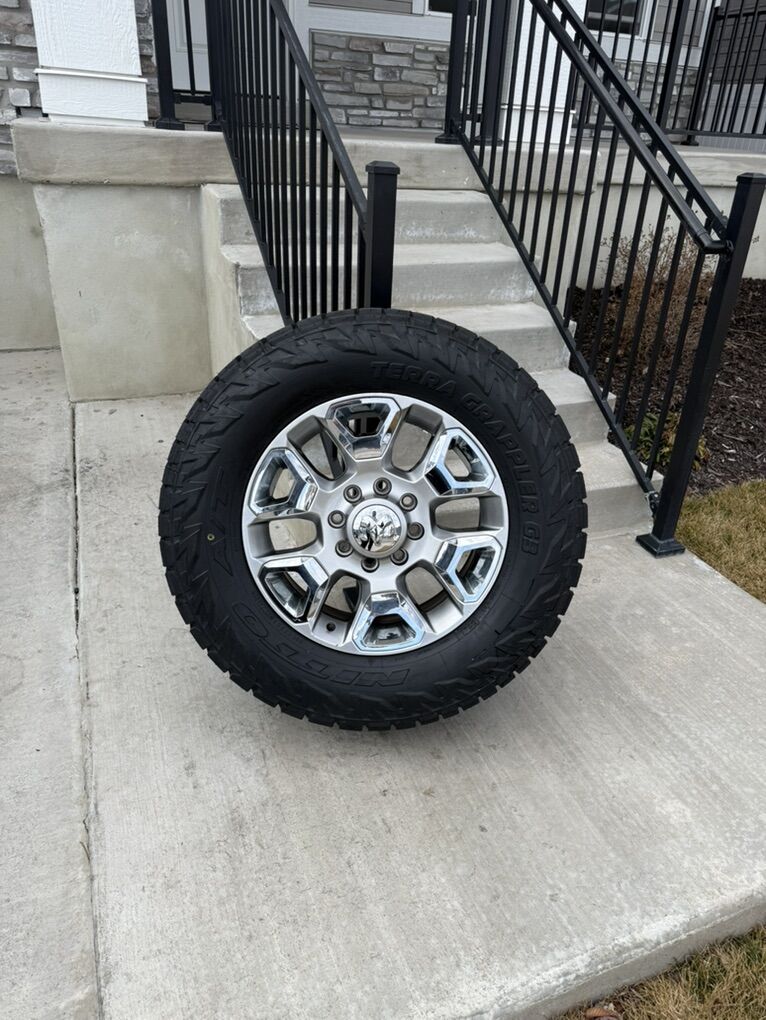 ApplePaySet of 4-Dodge Ram 3500 Limited Rims and Tires 295/65R20 Nitto Terra Grappler G3 Load E in excellent condition asking $3000 obo Tires are new Rims are in excellent condition no curb rash I can sell the rims or tires separately Comes with lug nuts and sensors Bolt pattern 8-6.5 Text anytime 385-402-2292