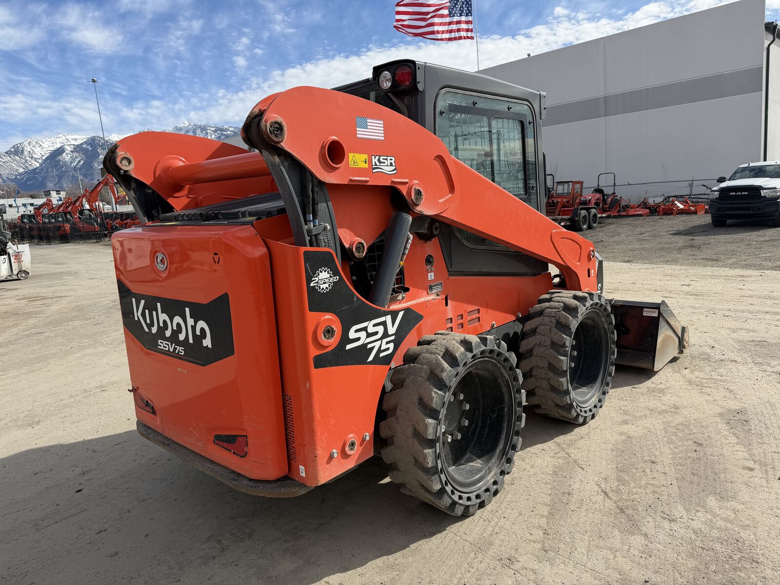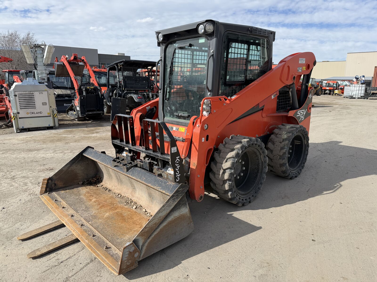 This 2022 Kubota SSV75PHRC is a well equipped, enclosed cab skid steer with low hours and excellent versatility. It features pilot joystick controls, high flow hydraulics, Kubota Shockless Ride Control, hydraulic quick coupler, and solid no puncture tires for maximum durability on job sites where flats are not an option. This unit comes with both a 74 inch heavy duty front bucket and a set of pallet forks, making it ready for material handling, grading, loading, and job site cleanup. The full cab is equipped with heat and air conditioning for year round operator comfort. A strong, simple vertical lift path machine with excellent breakout force and hydraulic performance. This SSV75PHRC is a powerful and reliable machine suited for construction, landscaping, agriculture, snow removal, and material handling applications. With ride control, and solid tires, it is built to handle demanding job site conditions while maintaining operator comfort and control. Please feel free to reach out for information on our financing options, or to schedule a time to see it in person.