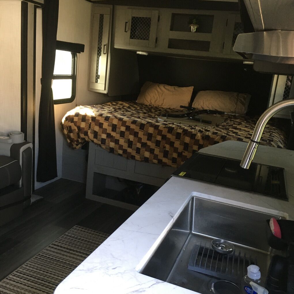 Very Clean!! Excellent condition!!! Used 12 times in 5 years. Water Heater, A/C, Furnace, Water Pump, ALL in excellent condition. King size bed, Love Seat/ double bed. Outdoor speakers, 14’ canopy, Outdoor Shower. Interior ceiling height 6’8”!!!, Outdoor Accent Lighting!! Sway bars included!! $25,000 firm!