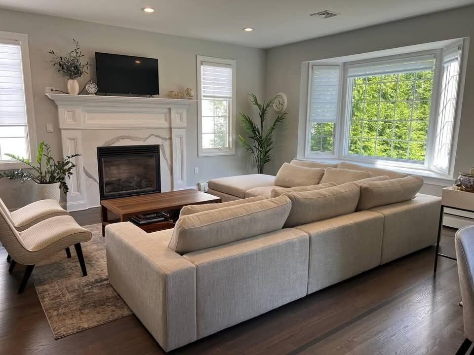 ApplePaycream colored sectional no stains, rips or tears. it's in great condition. this is a great couch. comes from a pet and smoke free home!