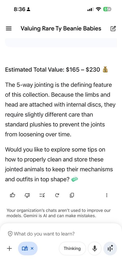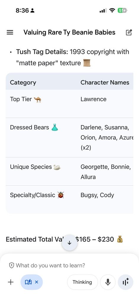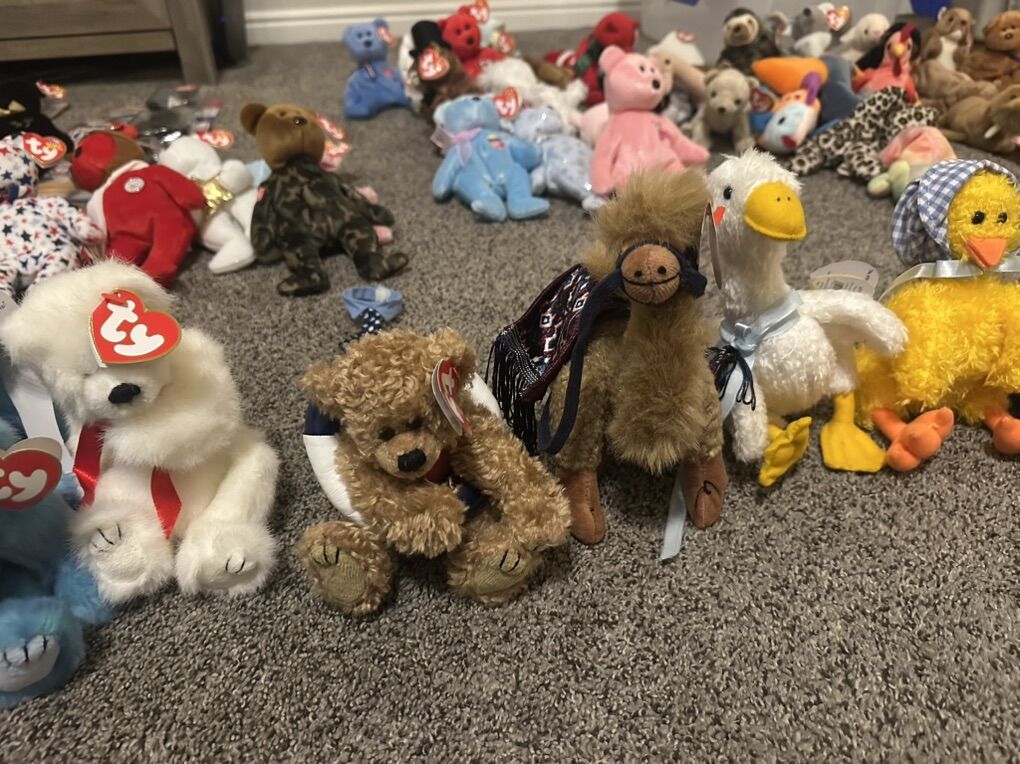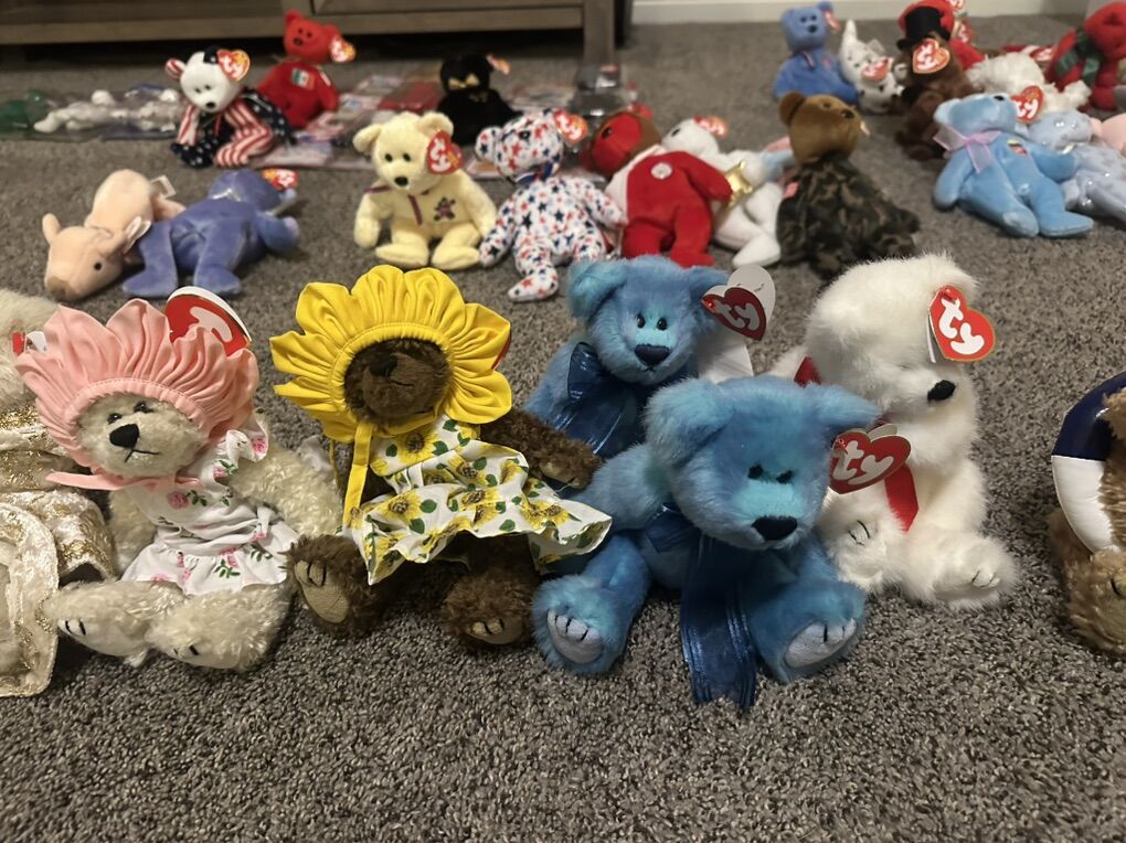 PayPal14 beanies, just under 12.00 each!! 6th Gen. China tagged 1993 matching beanies. All have the 5 moving joints (neck, both arms/legs) except for Lawrence the Camel, he has 4 joints. All in new stored condition, fun to fluff up a bit. No beans in these babies in the antique treasure collection, and we have 2 of the Allure bright blue bears in that count. Tags are in great and toy condition is great(not played with) bought to collect and didn’t hit a home run lol. Still hate to sell them because of the fun these jointed bears and animals are. Please check out my other listings, as I have a bunch of other “collections” to post. Thanks for the look! Darren and Staci