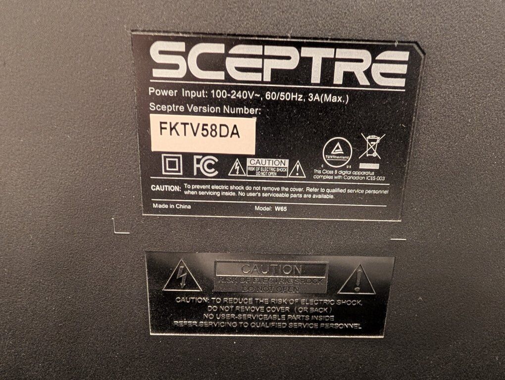 VenmoThe model is a Sceptre U650cv-u. It's several years old, but works as well as it ever has. No dead pixels or any issues at all. Added a picture of the blue screen to show no damage or dead spots.