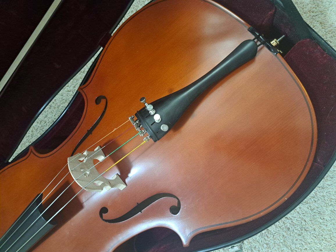 VenmoCello 4/4 Full Size Antonius VC-150, in good condition, case shows some wear on the outside but latches fine, comes with bow (in great condition), has finger tape marker installed, purchased used from previous owner, selling because we purchase the wrong size (not because of any issues).