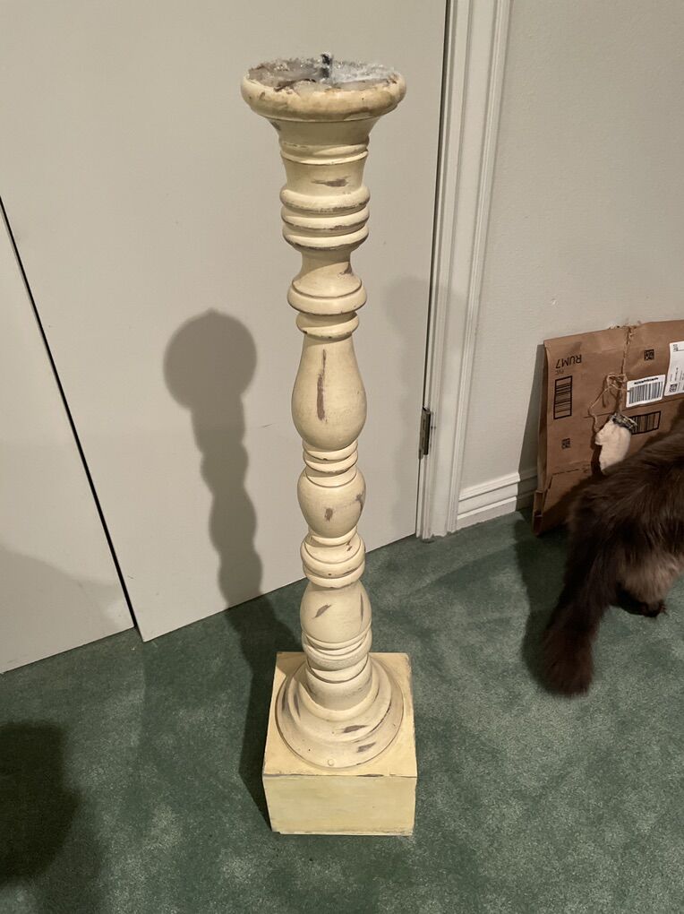 Large vintage cream candlestick. It had a flower arrangement on it from a wedding. OBO