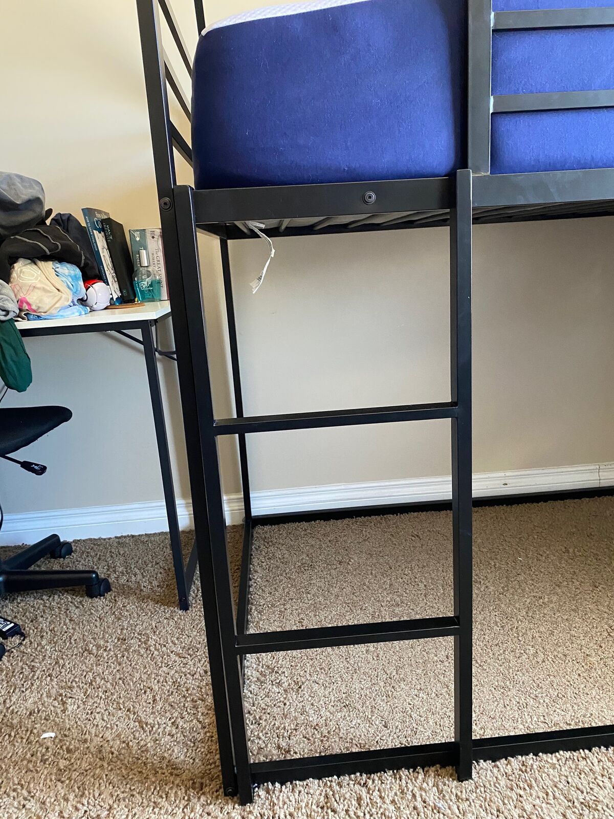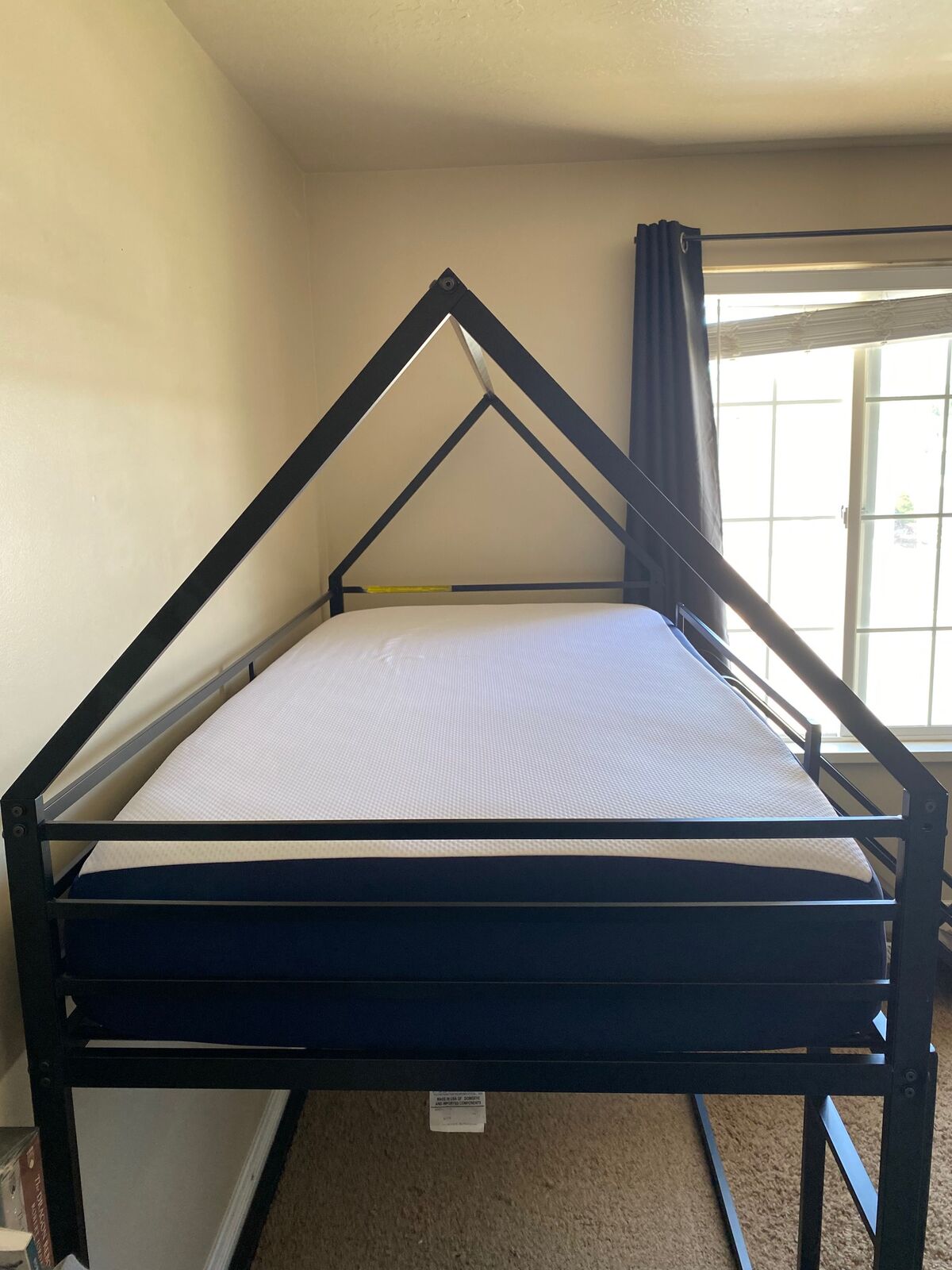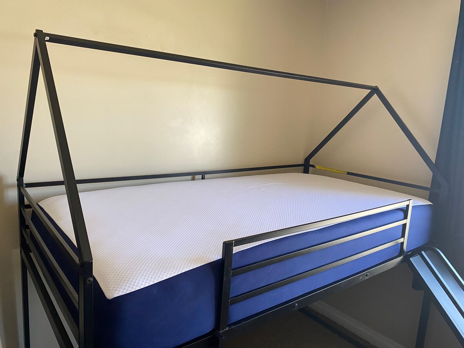 My son has loved this bed and found it so fun to drape a blanket over the top to create a tent. He’s too tall for the top now and we’re moving, so we must sell. It’s a great bed! I have it all disassembled and shrink wrapped for easy pick up. Instructions and hardware is all included.