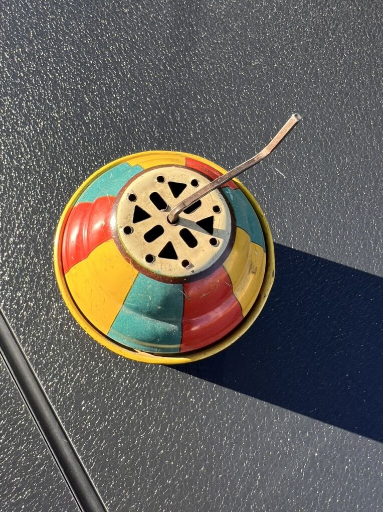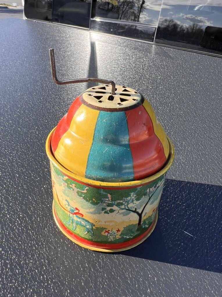 VenmoThis item is a vintage Wyandotte Toys Circus Dog Band tin litho winding music box. It features colorful circus-themed graphics printed directly onto the metal body. The mechanical toy is operated by turning the hand crank on top to play music. Such items are prized by collectors of vintage toys and circus memorabilia
