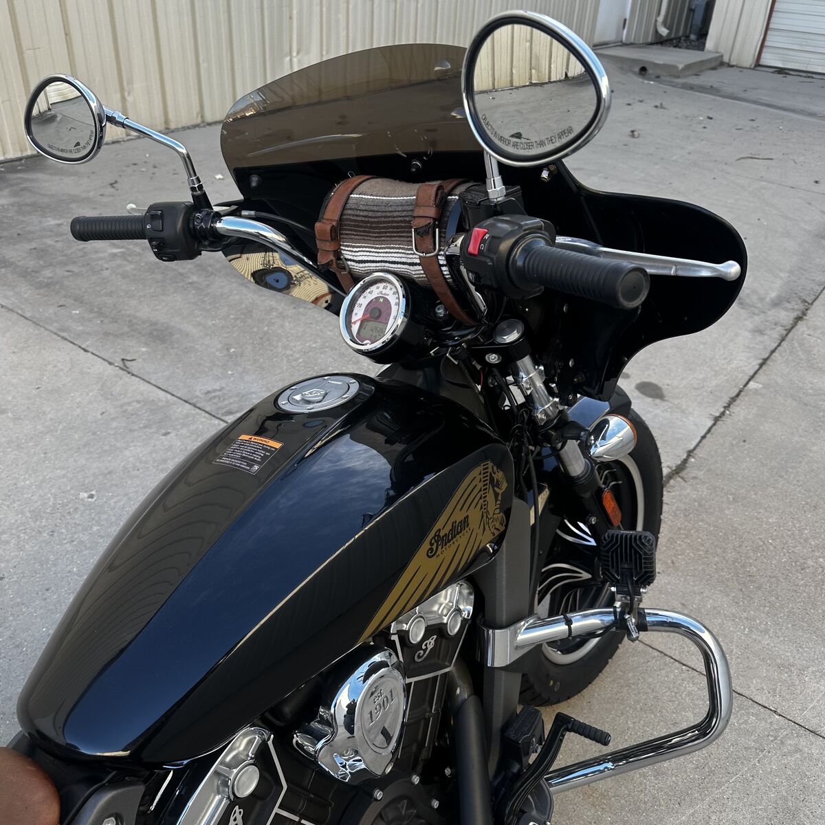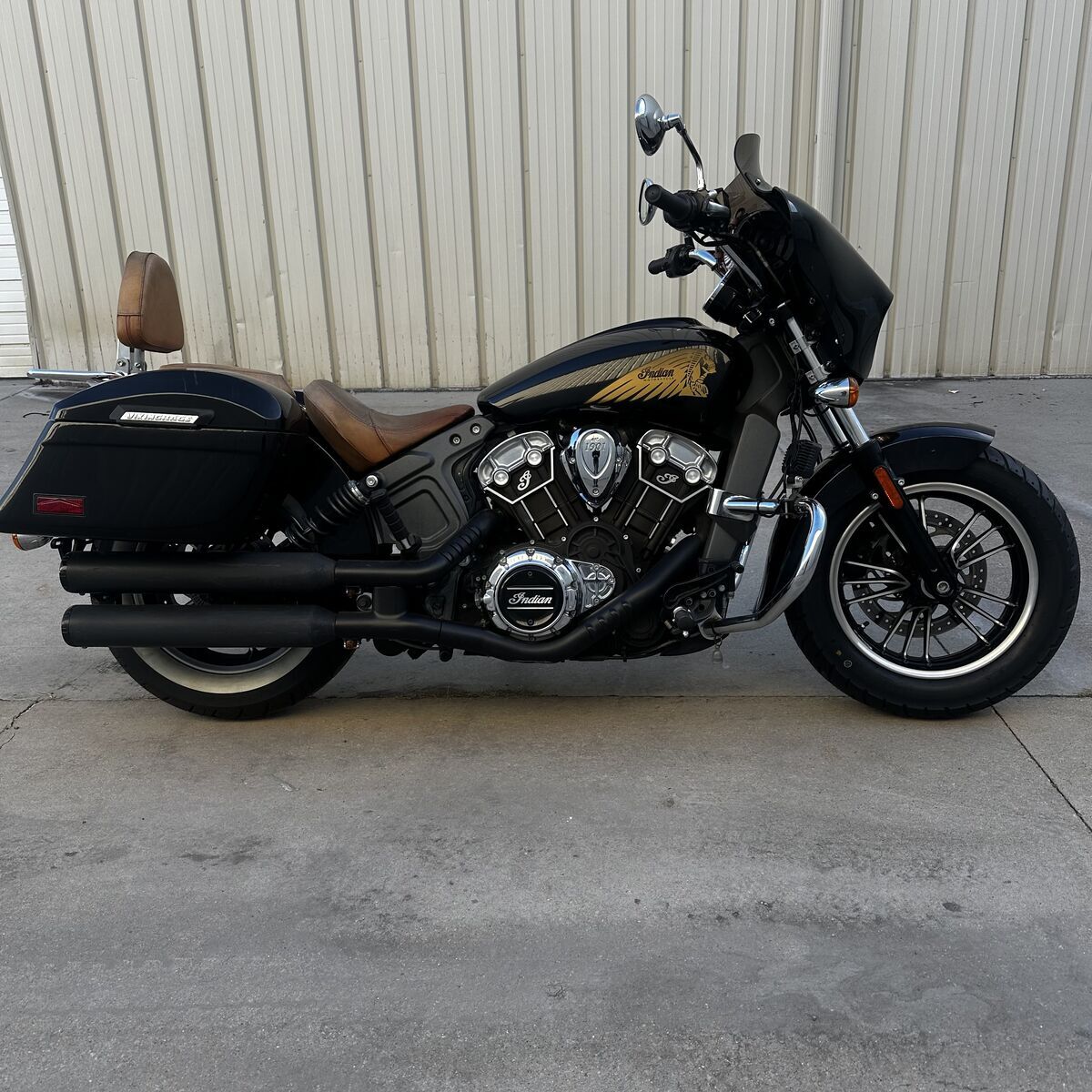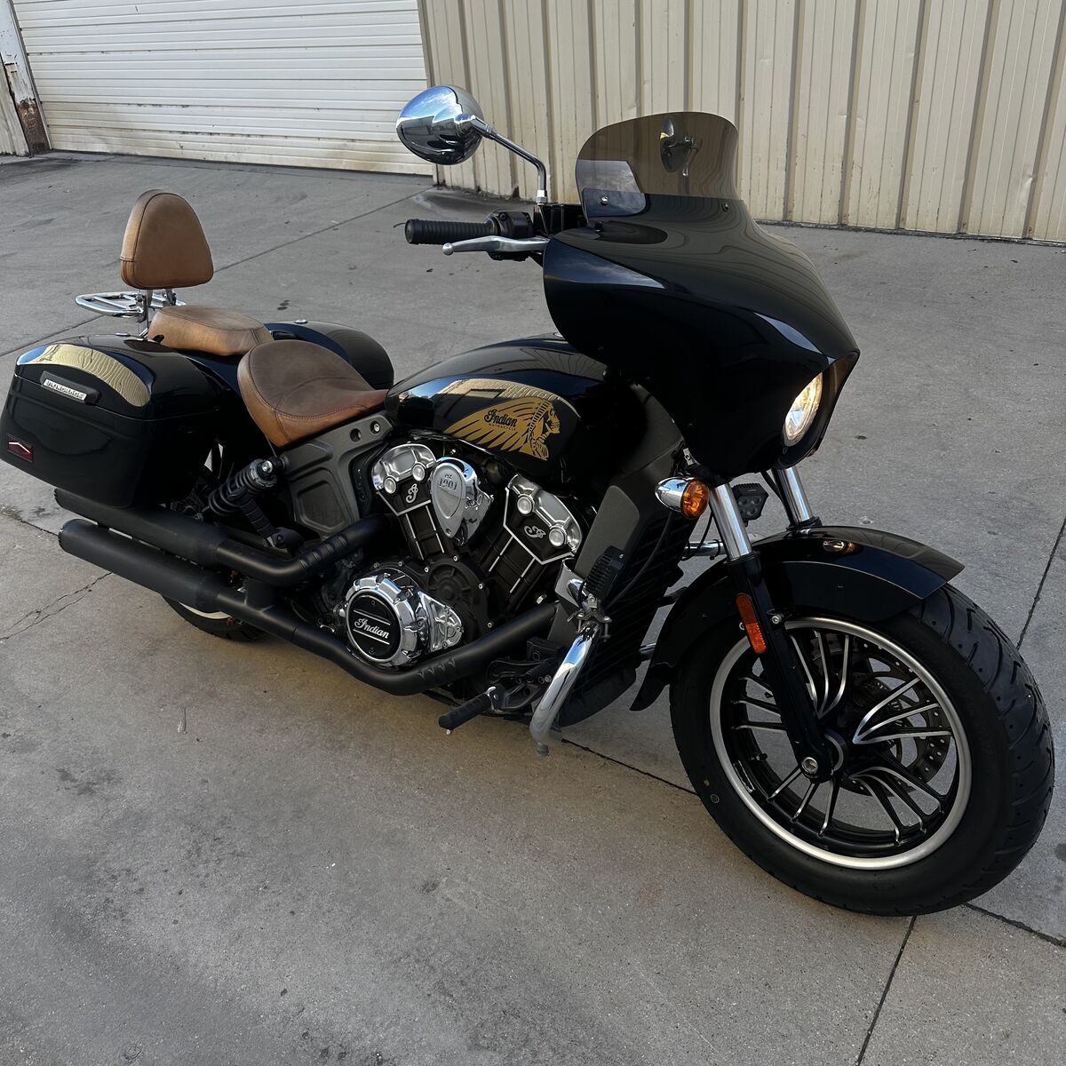 This scout has a ton of upgrades! Some of them include a batwing fairing, Viking saddle bags, passenger backrest, luggage rack, passenger seat and pegs, engine guards, upgraded exhaust, and brand new front tire. This is the full size scout that has the 1,133cc engine and 6 speed transmission. Clean and clear title.