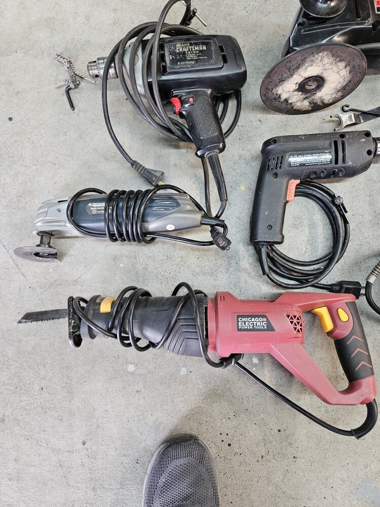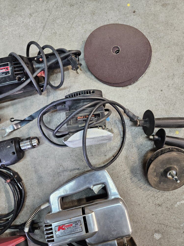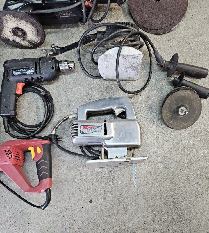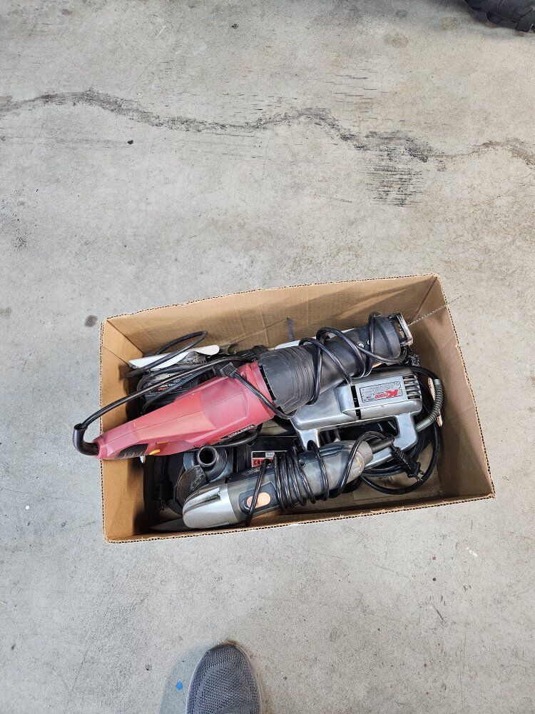 Box O power tools all in good working condition. We have a multi function tool, 2 drills, a palm sander, a saws all, a disk sander/polisher. You're buying the whole package. Cash only, local pickup only. Thanks!