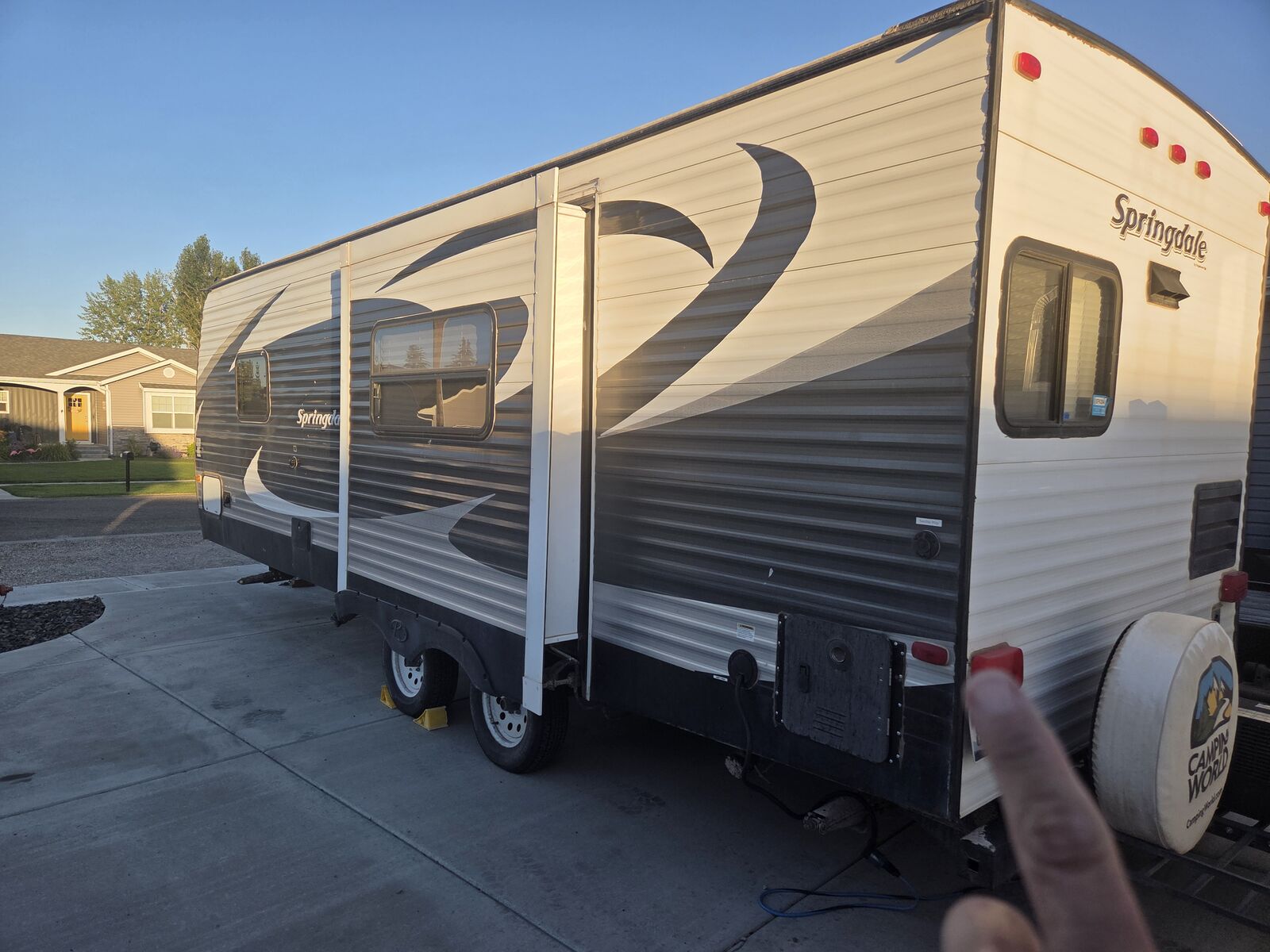 2015 springdale by Keystone model 241RK. Artic package. It's length and weight and all the manufacturer has them built to is in the last two pictures. Amazing Trailer, everything works exactly as it should. no leaks. Ac works, heater works. there is a hitch on the back for double pull. i just have a basket back there for the generator. Tankless water heater. Hot water on demand is what that does. So much storage. no tears in awing all speakers work. Also has outdoor shower. any other questions just ask. Thank you. asking $13,000