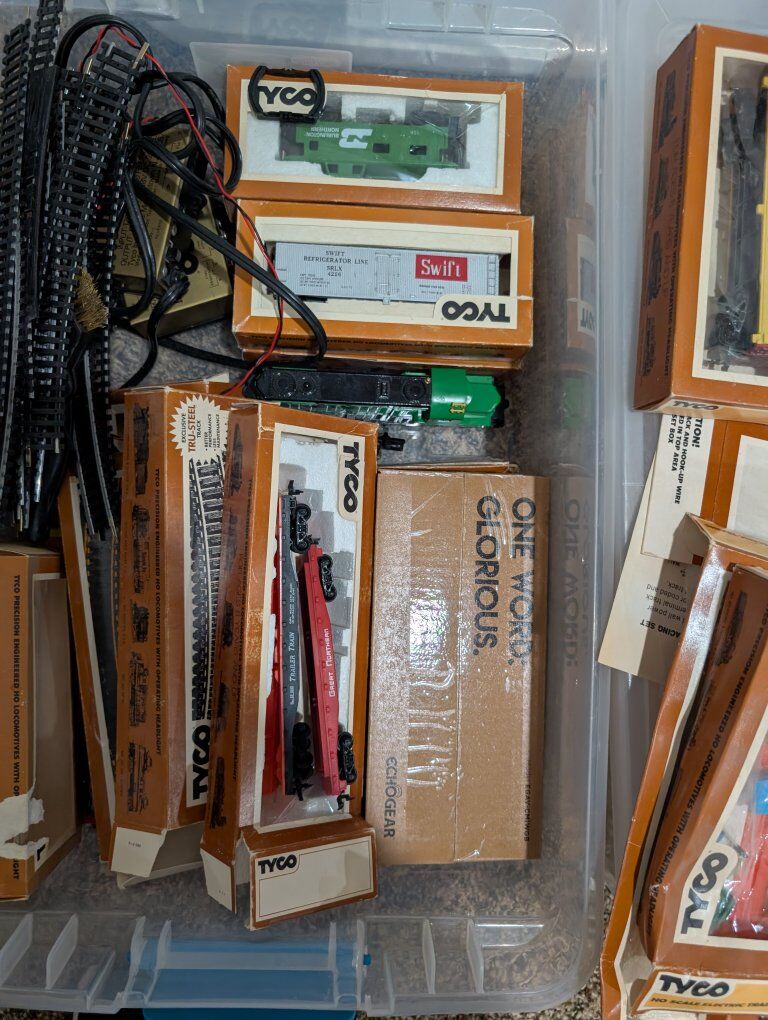 Vintage TYCO train set. This comes with various cars and engines. Some are still in the box. Located in Mona, Utah. pick up only. Willing to meet in Spanish Fork. Call or text 801-367-7327. Cash only.