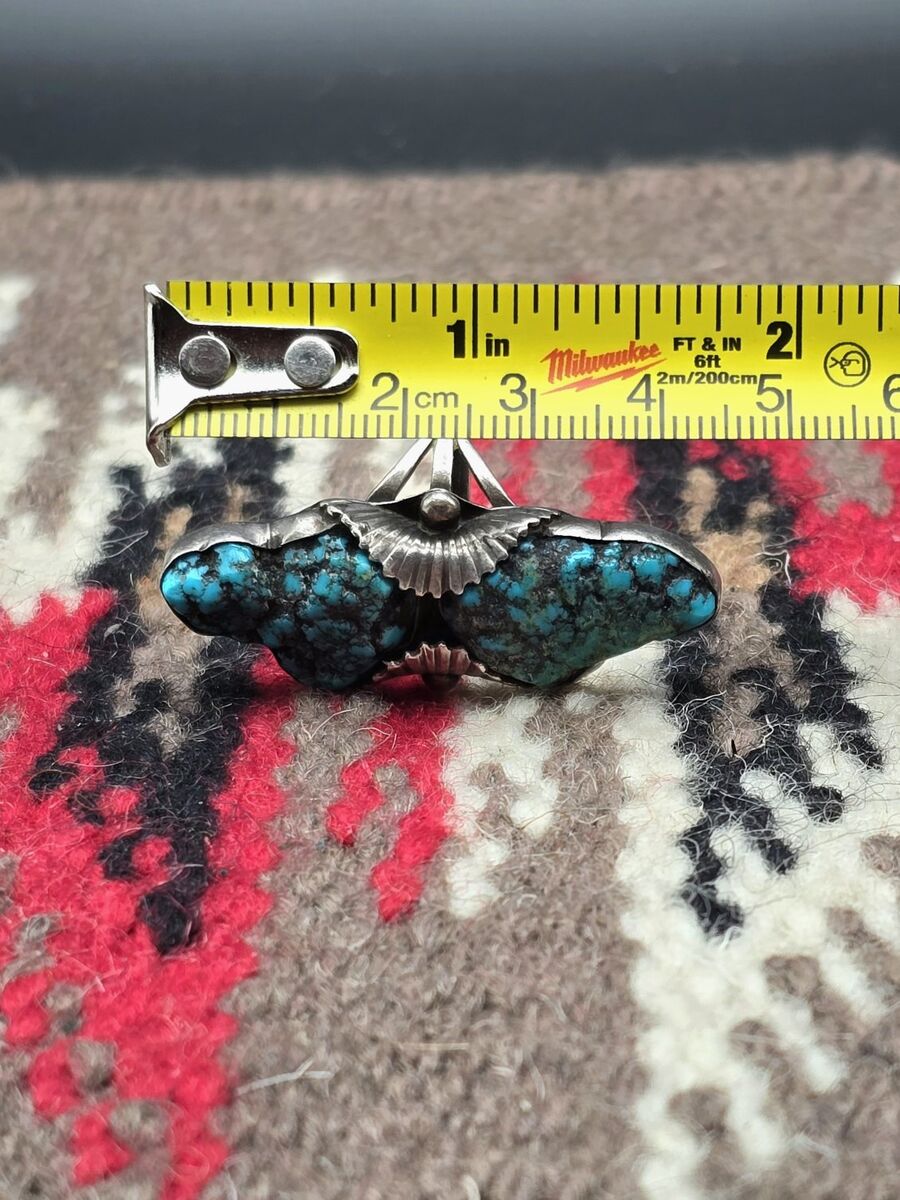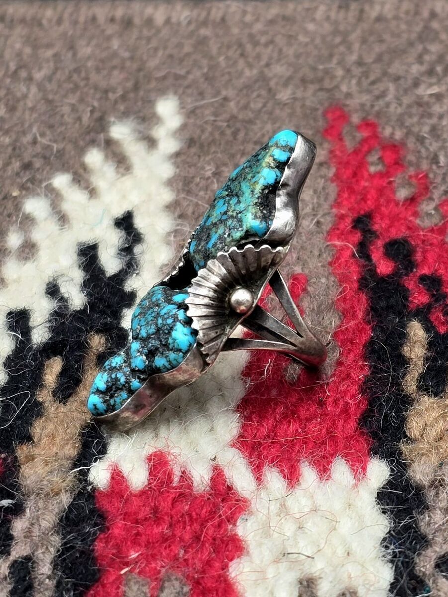 VenmoIf you need a statement piece for those beautiful fingers.. here you go! Imagine all of the compliments you'll get with this uniquely styled ring, set with chunky high grade Kingman Turquoise. This ring appears to be vintage based on the patina, and it is signed! I must be honest.. I couldn't quite make out the artists name, but they obviously know what they're doing based on the attention to detail they have. It is a size 6.