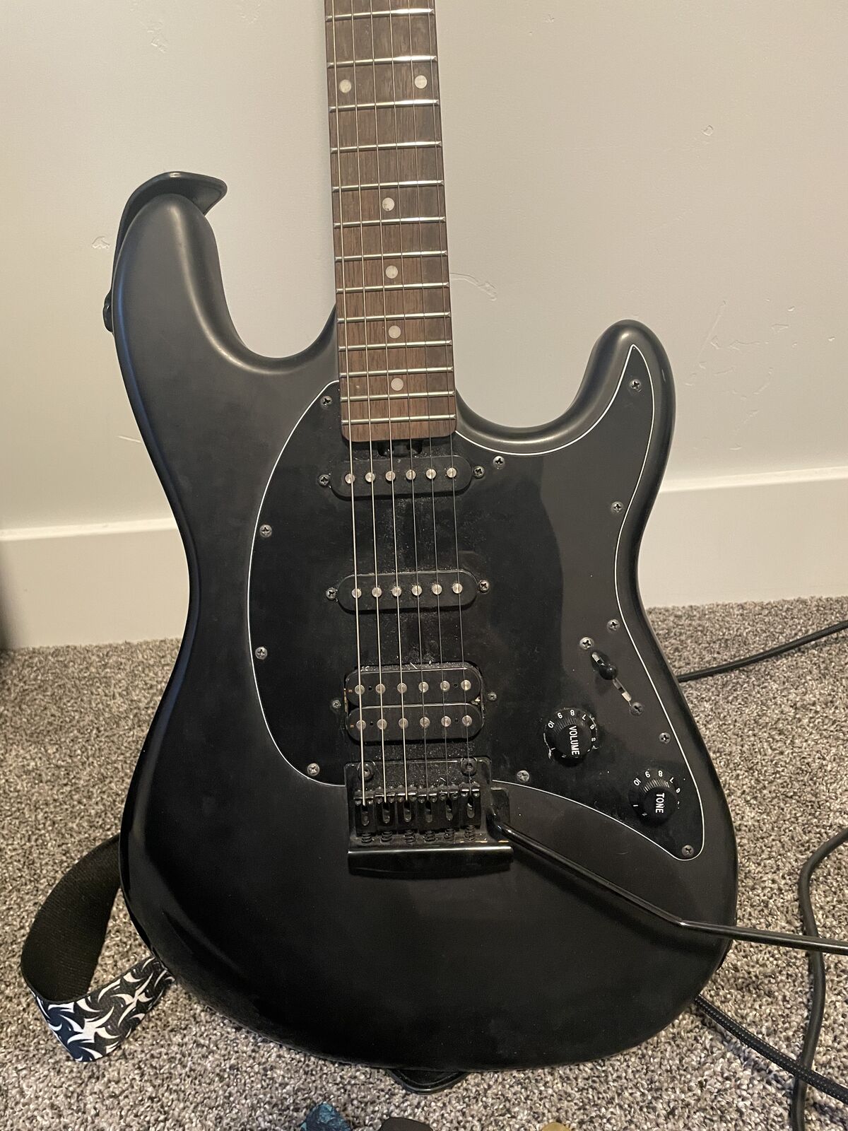 VenmoThe Guitar: Sterling by Music Man Cutlass in the HSS configuration (one humbucker, two single coils). It’s a very versatile setup that can handle everything from clean blues to heavier rock. It has a comfortable neck and stays in tune well.