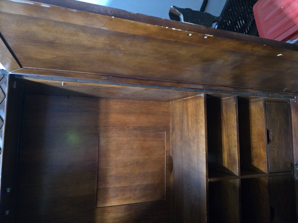 VenmoAdd a touch of Old World elegance to your home with this stunning, handcrafted solid wood armoire. Featuring a timeless Spanish Colonial/Mediterranean Revival aesthetic, this statement piece is as functional as it is beautiful, perfect for use as a luxury wardrobe, media console, or high-end bar cabinet. Key Features: Artisanal Detailing: Intricately carved floral and foliate scrollwork accents a staggered crown molding base. Decorative Metal Inlays: Six inset door panels feature embossed copper/brass-toned metal with traditional motifs. Hand-Forged Hardware: Centered by an oversized circular medallion latch and robust iron hinges. Solid Construction: Built from durable, heavy-duty hardwood designed to last for generations.