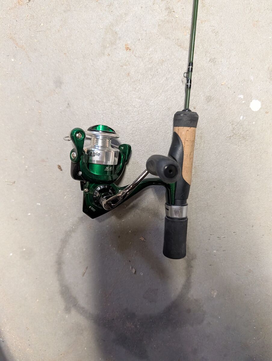 Whether you're targeting finicky crappie, aggressive walleye, or anything in between, our Bass Pro Shops XPS Fish Eagle Ice Spinning Combo allows you to deliver effective ice fishing presentations. Its sensitive and lightweight graphite rod blank proves up to the task of hauling fish from the depths; the custom handle transmits every bite to your hands. Stainless steel guides with polished stainless steel inserts shed water to resist freeze-up and corrosion. Our matching reel boasts a 3+1 ball-bearing system with infinite anti-reverse and a retrieve as smooth as lake ice. Anodized aluminum spool; aluminum handle with Soft Touch knob.