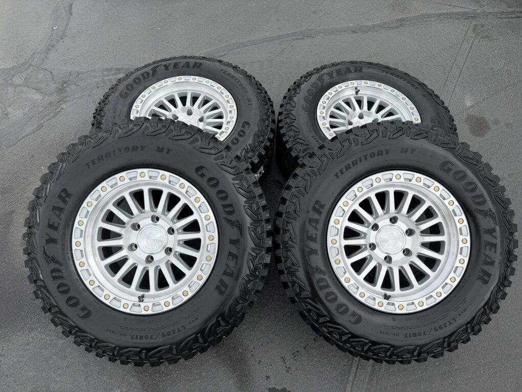 Tires are Goodyear Wrangler Territory M/T 285/70R17 which is roughly 33x11x17 load range C