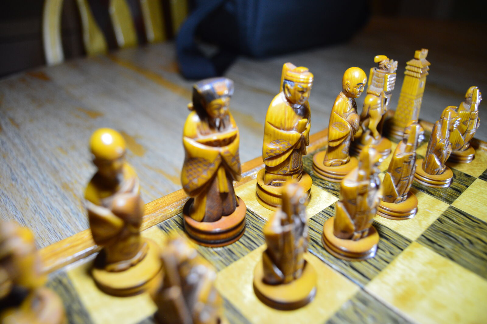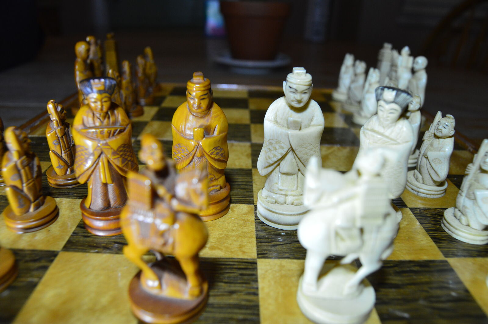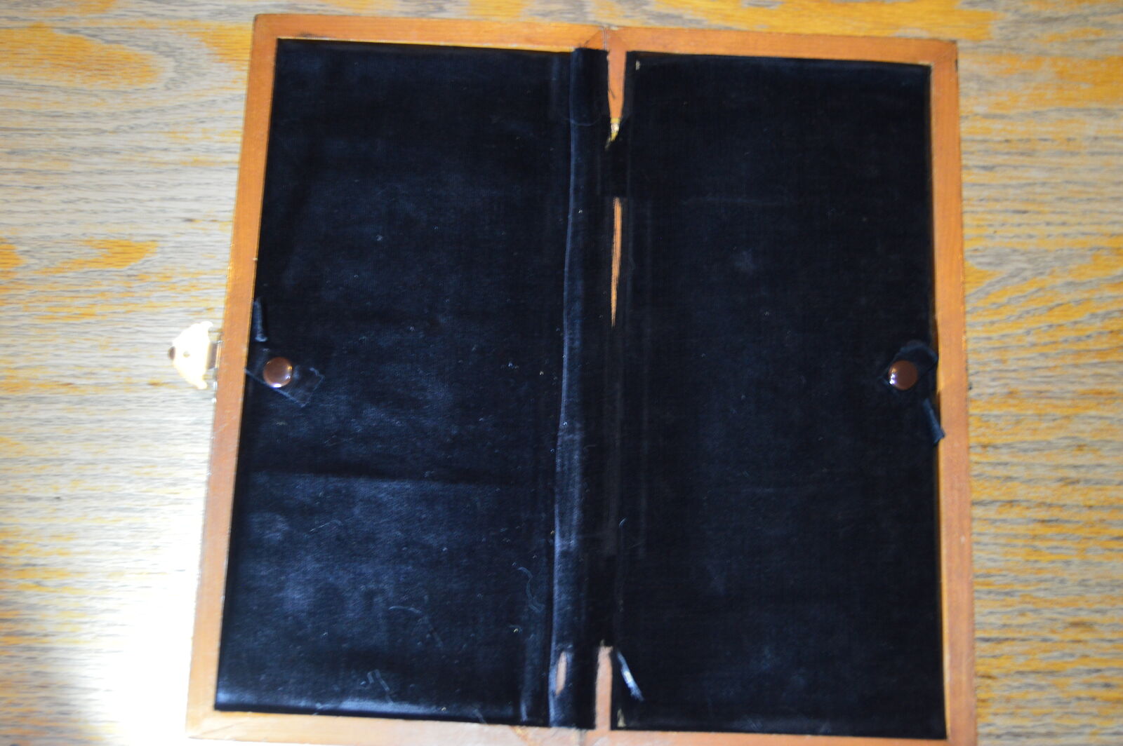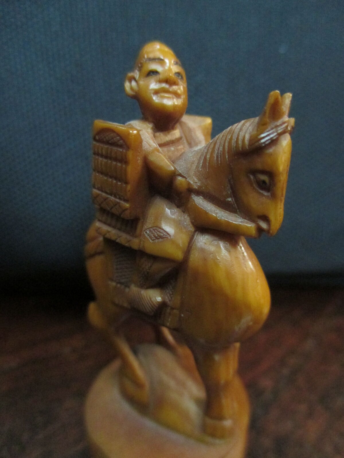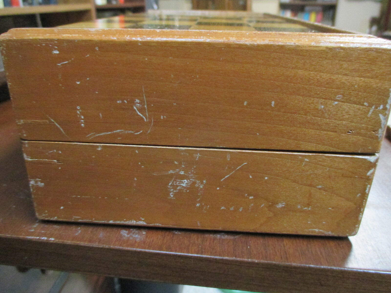 PayPalThis is a handcarved Japanese chess set made in the 1950's. The board is 12" x 12" x 1.75" and the tallest pieces are just over 2". The pieces are intracately carved and very detailed. One of the rooks has a small piece that has broken off (as pictured). The board has some scratches but is in good condition considering its age. It doubles as a case for the pieces which is lined with felt. One of the felt lined dividers has become detached do to wear and the felt becoming fragile in its old age. There is paperwork from the original owners with a brief history of the set.