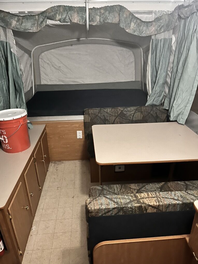 ApplePayGreat condition pop up tent trailer. Queen bed on one side and a double on the other with the table turning into extra bed space. Everything worked the last time it was used. This is an excellent condition very well maintained.