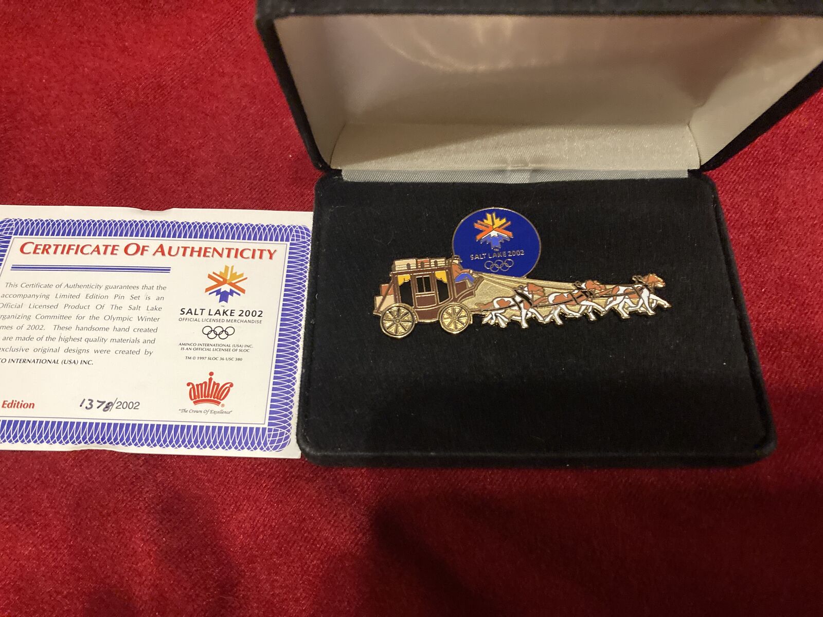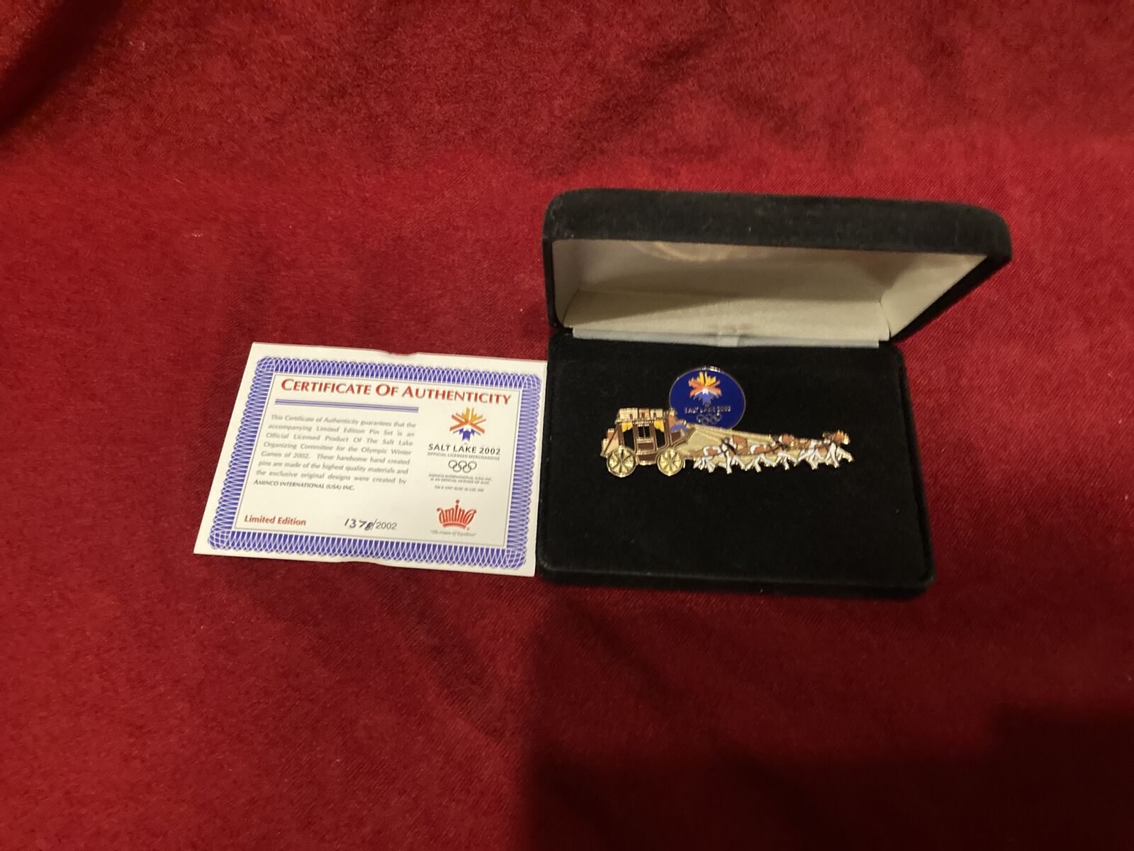 Hello I have a Salt Lake City 2002 Winter Olympic Pin Stagecoach New In Case Great Deal for Collectors