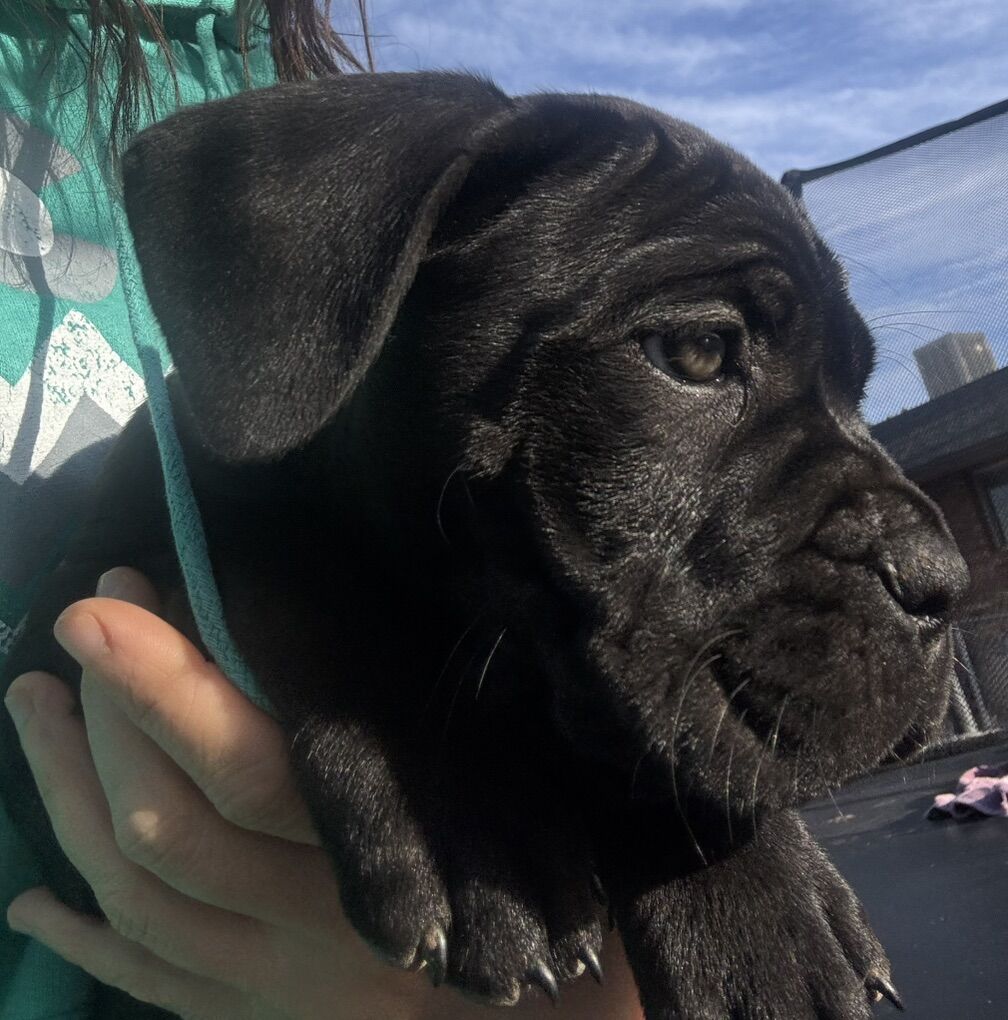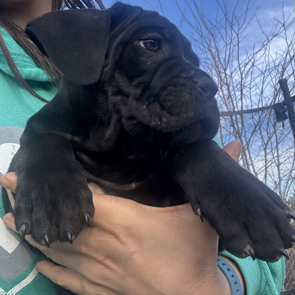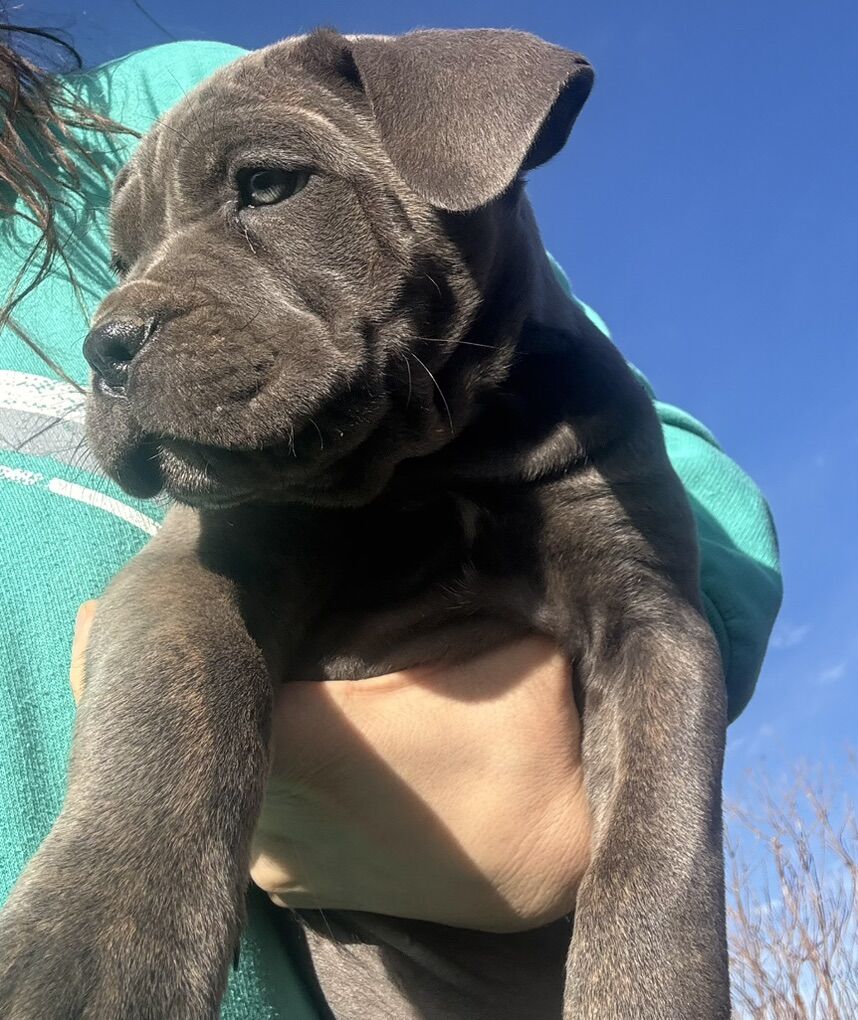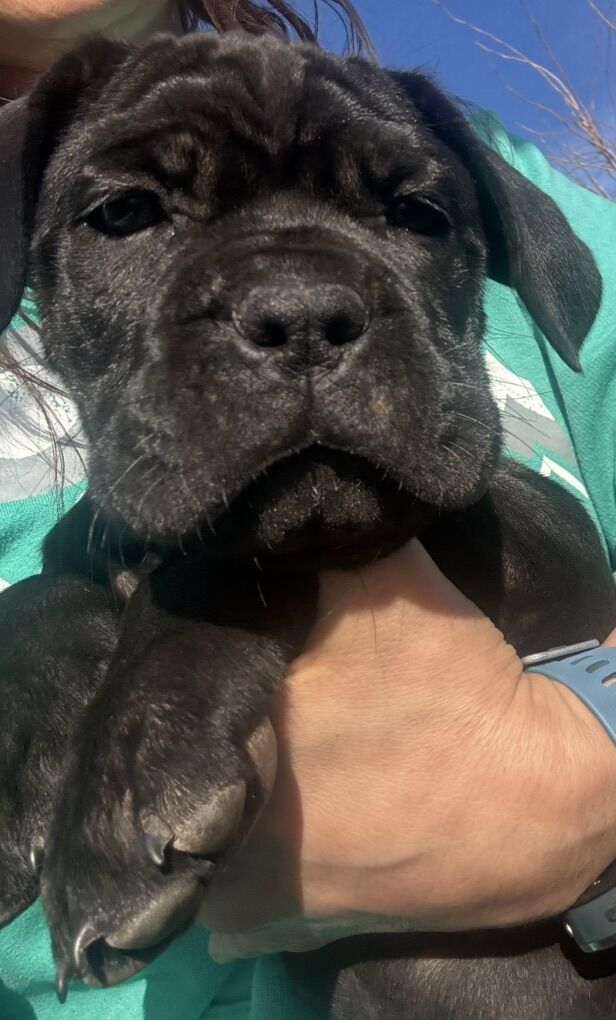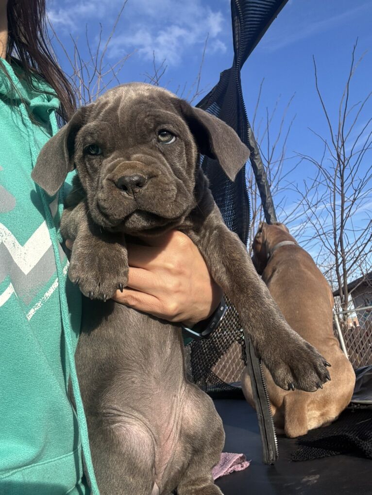 ZelleCane Corso pups, ICCF registered, born 12/28/25, only 2 boys left ( 1 blue 1 black), and 3 girls ( 1 blue, 2 black), ready to be rehomed. DM for more details and fees. Will hold with deposit.